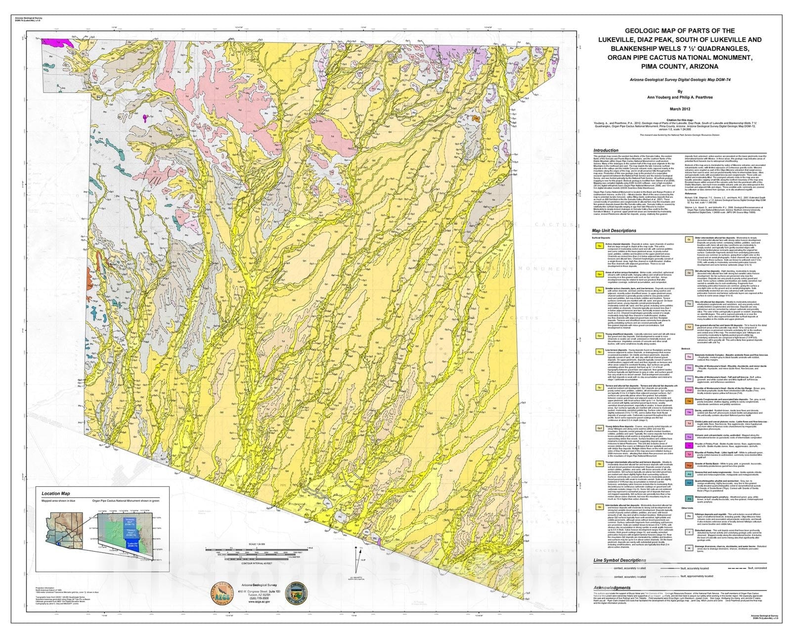 Map : Geologic map of parts of the Lukeville, Diaz Peak, South of Lukeville and Blankenship Wells seven 1/2' quadrangles, Organ Pipe Cactus, 2012 Cartography Wall Art :