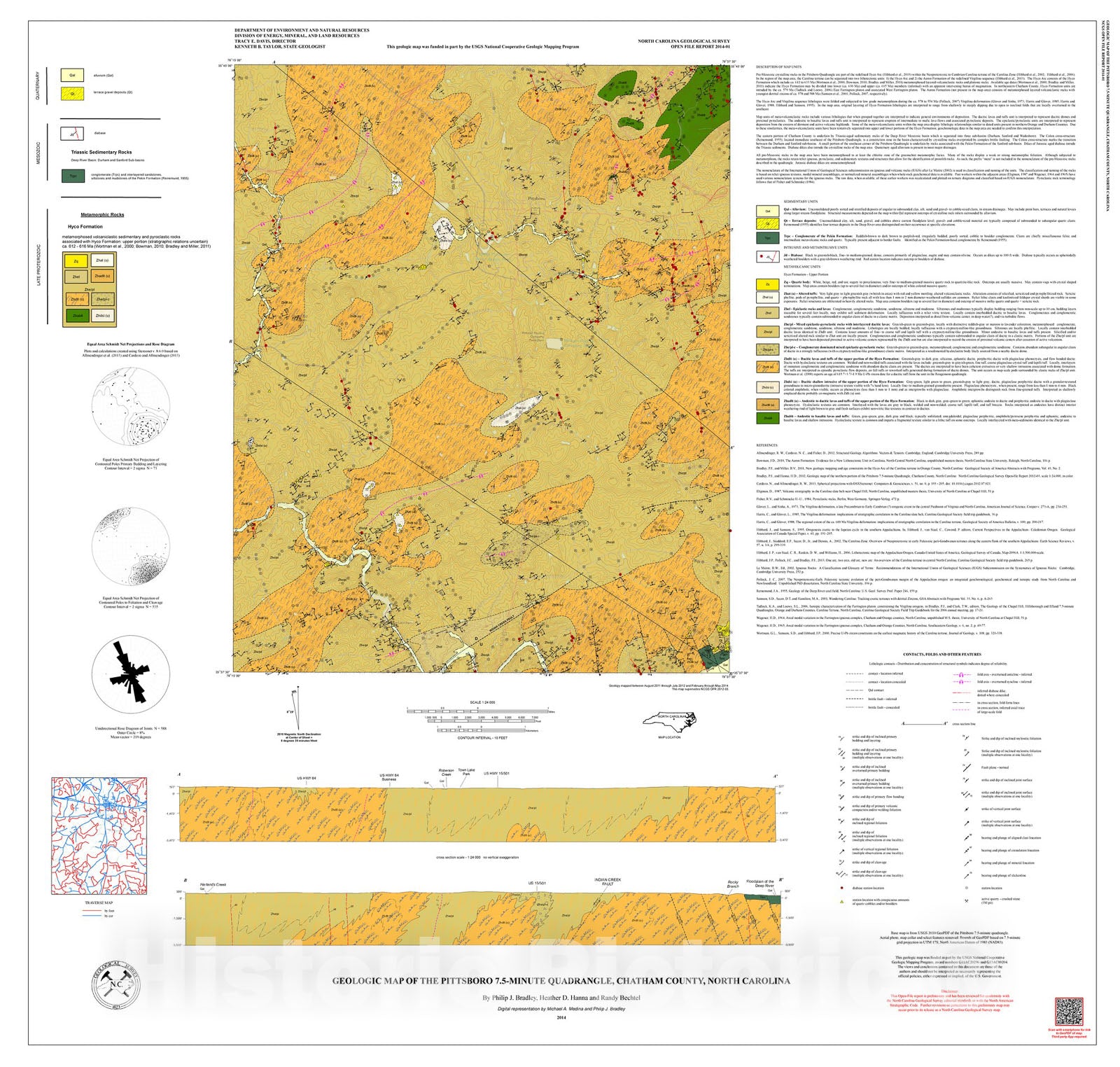 Map : Geologic map of the Pittsboro 7.5-minute quadrangle, Chatham County, North Carolina, 2014 Cartography Wall Art :