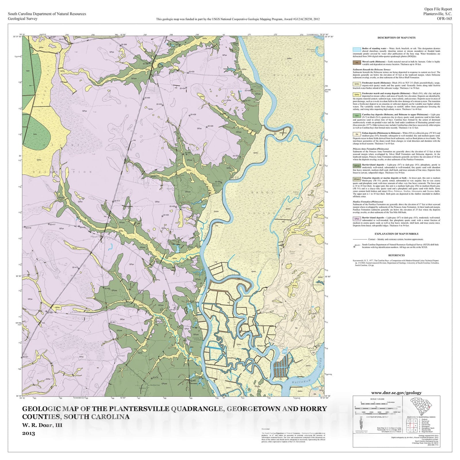 Map : Geologic Map of the Plantersville Quadrangle, Georgetown and Horry Counties, South Carolina, 2013 Cartography Wall Art :