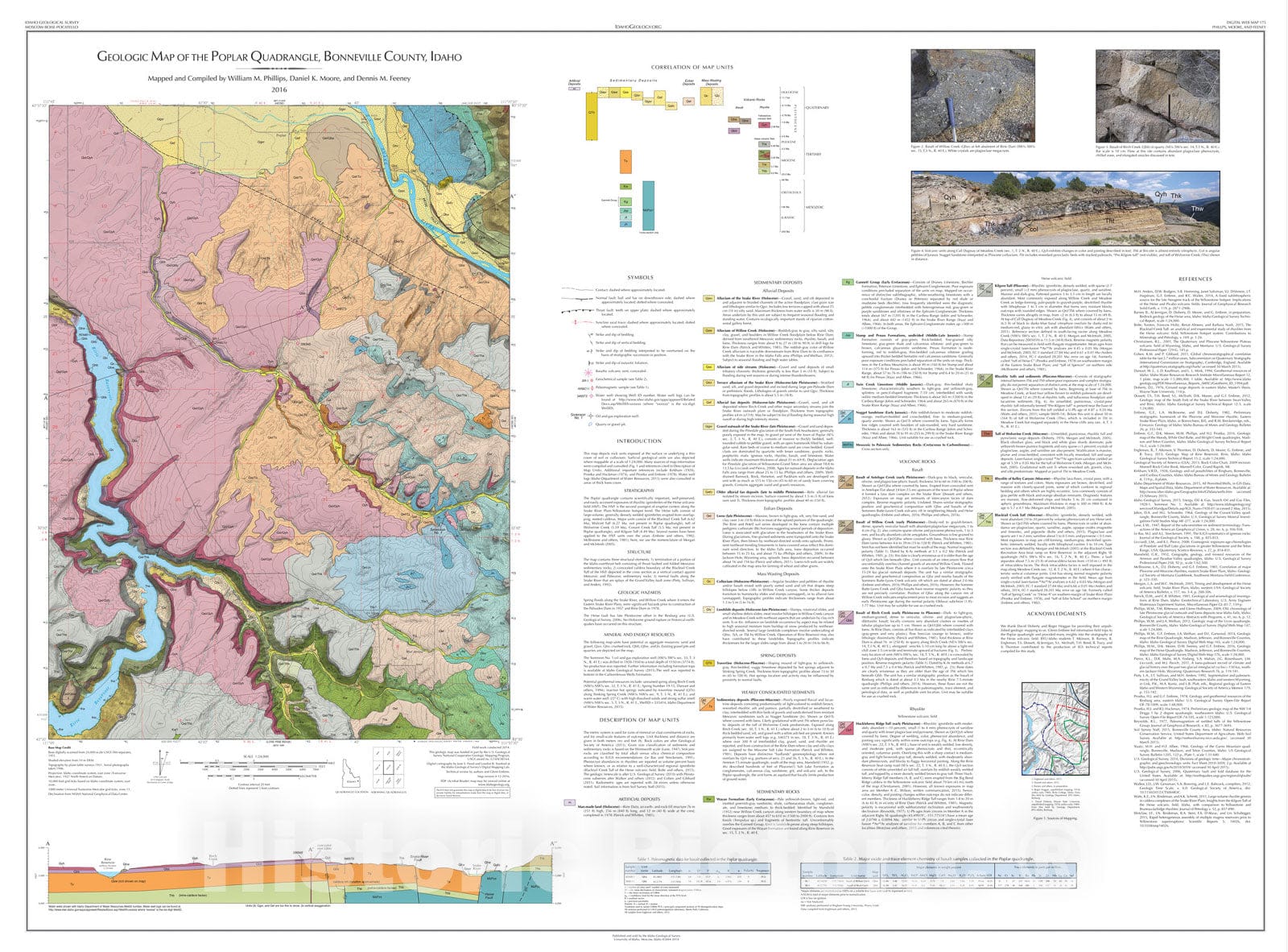 Map : Geologic Map of the Poplar Quadrangle, Bonneville County, Idaho, 2016 Cartography Wall Art :