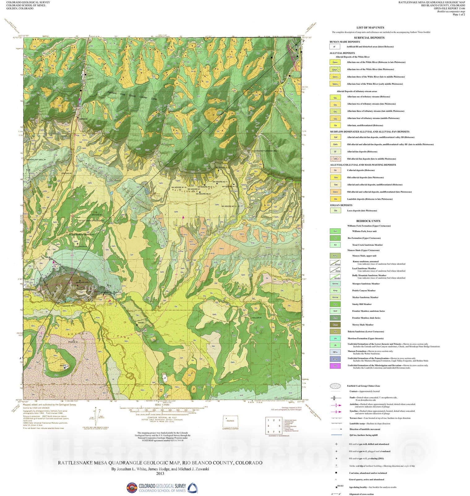 Map : Geologic Map of the Rattlesnake Mesa quadrangle, Rio Blanco County, Colorado, 2013 Cartography Wall Art :