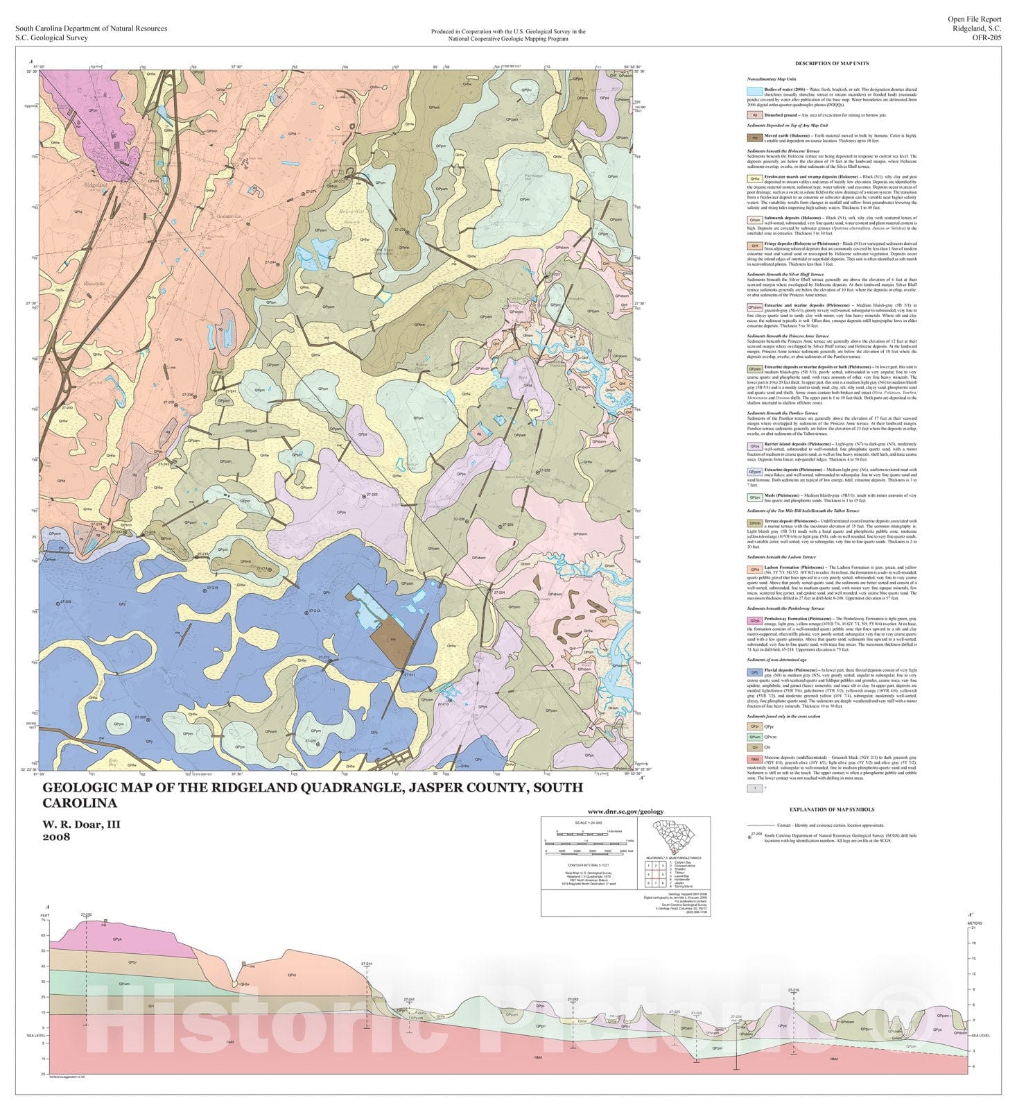 Map : Geologic Map of the Ridgeland Quadrangle, Jasper County, South Carolina, 2008 Cartography Wall Art :