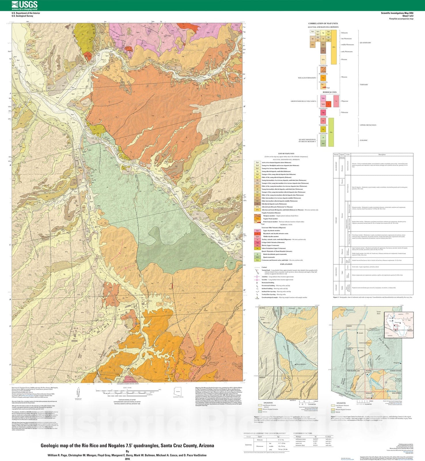Map : Geologic map of the Rio Rico and Nogales 7.5' quadrangles, Santa Cruz County, Arizona, 2016 Cartography Wall Art :