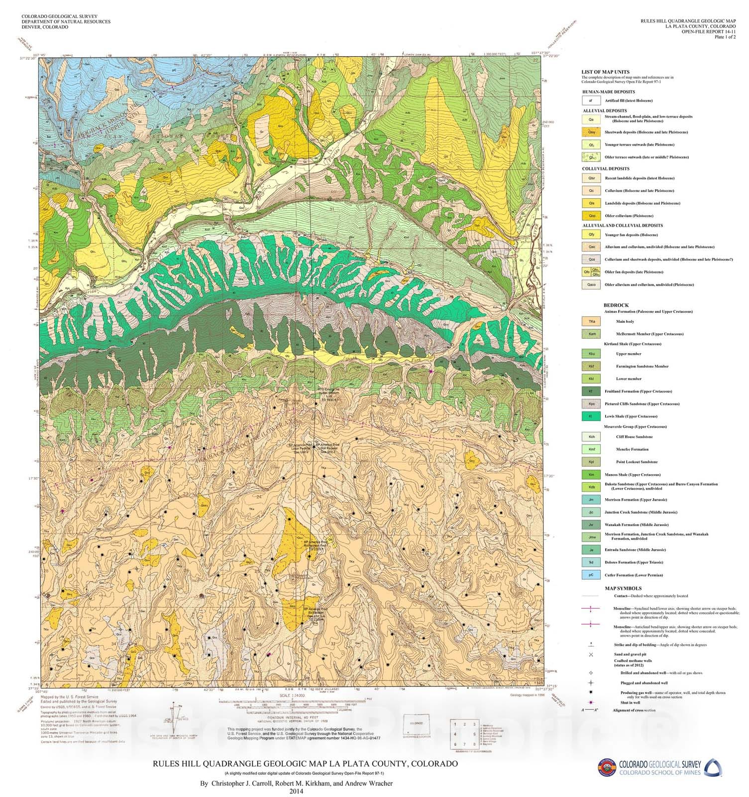 Map : Geologic Map of the Rules Hill quadrangle, La Plata County, Colorado, 2014 Cartography Wall Art :