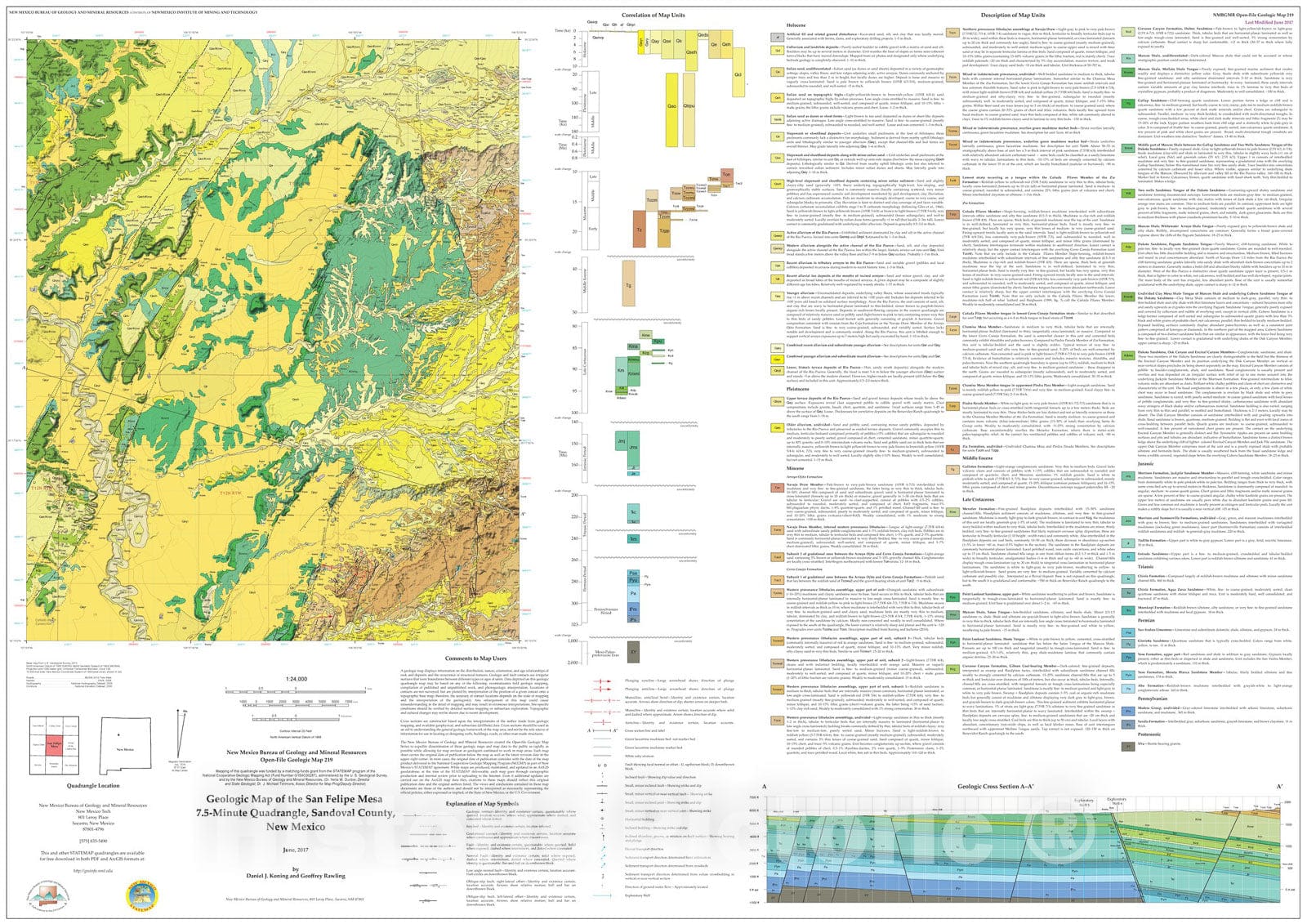 Map : Geologic Map of the San Felipe Mesa 7.5-Minute Quadrangle, Sandoval County, New Mexico, 2017 Cartography Wall Art :