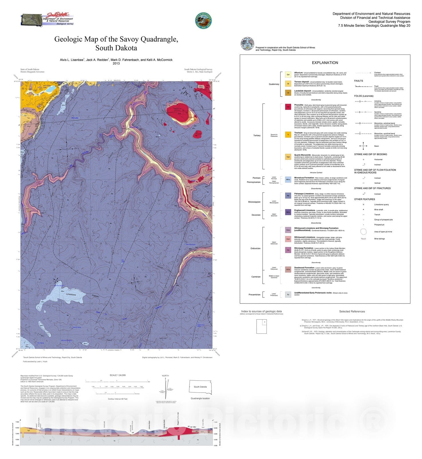 Map : Geologic map of the Savoy quadrangle, South Dakota, 2013 Cartography Wall Art :