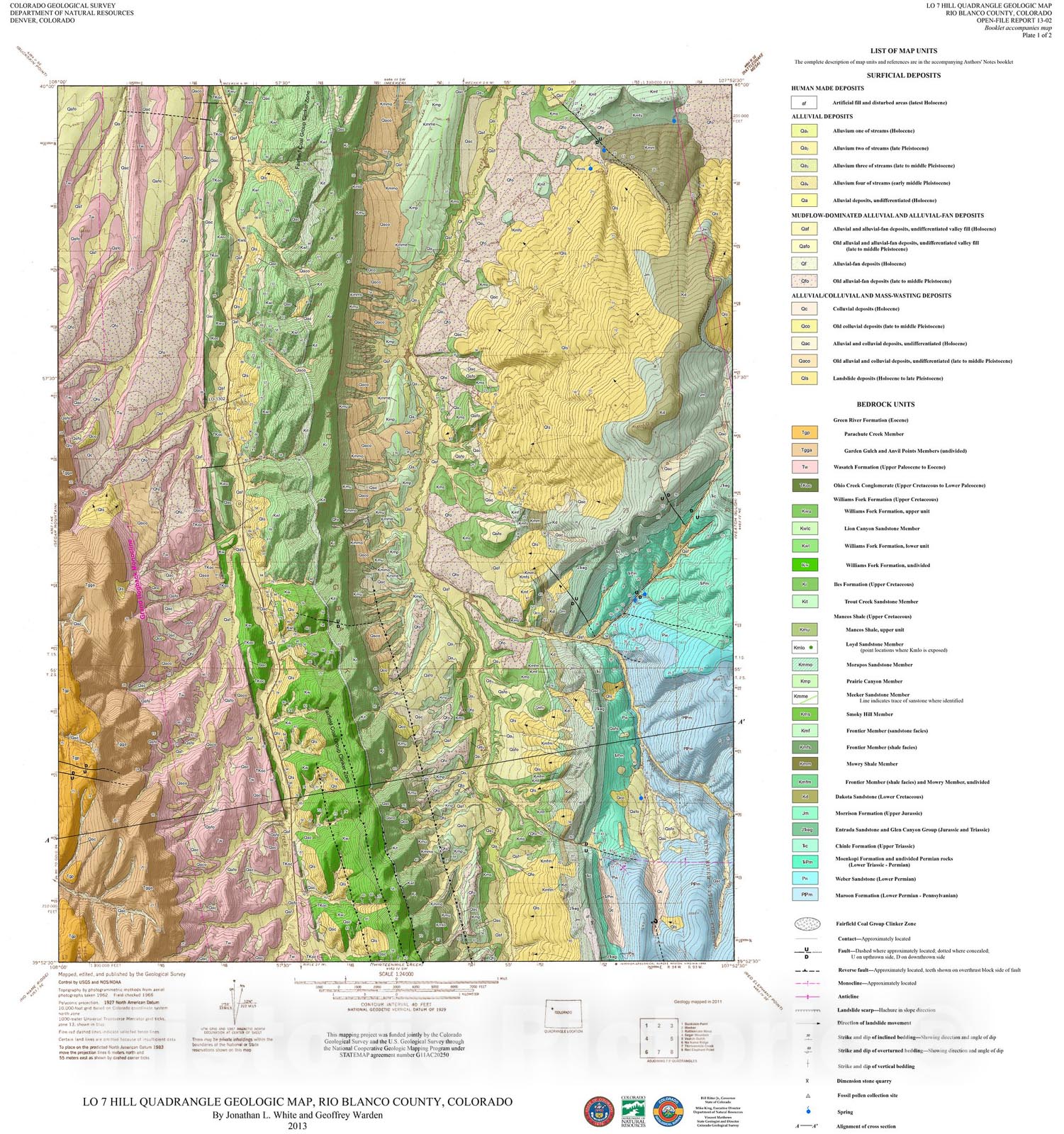 Map : Geologic Map of the LO seven Hill quadrangle, Rio Blanco County, Colorado, 2013 Cartography Wall Art :