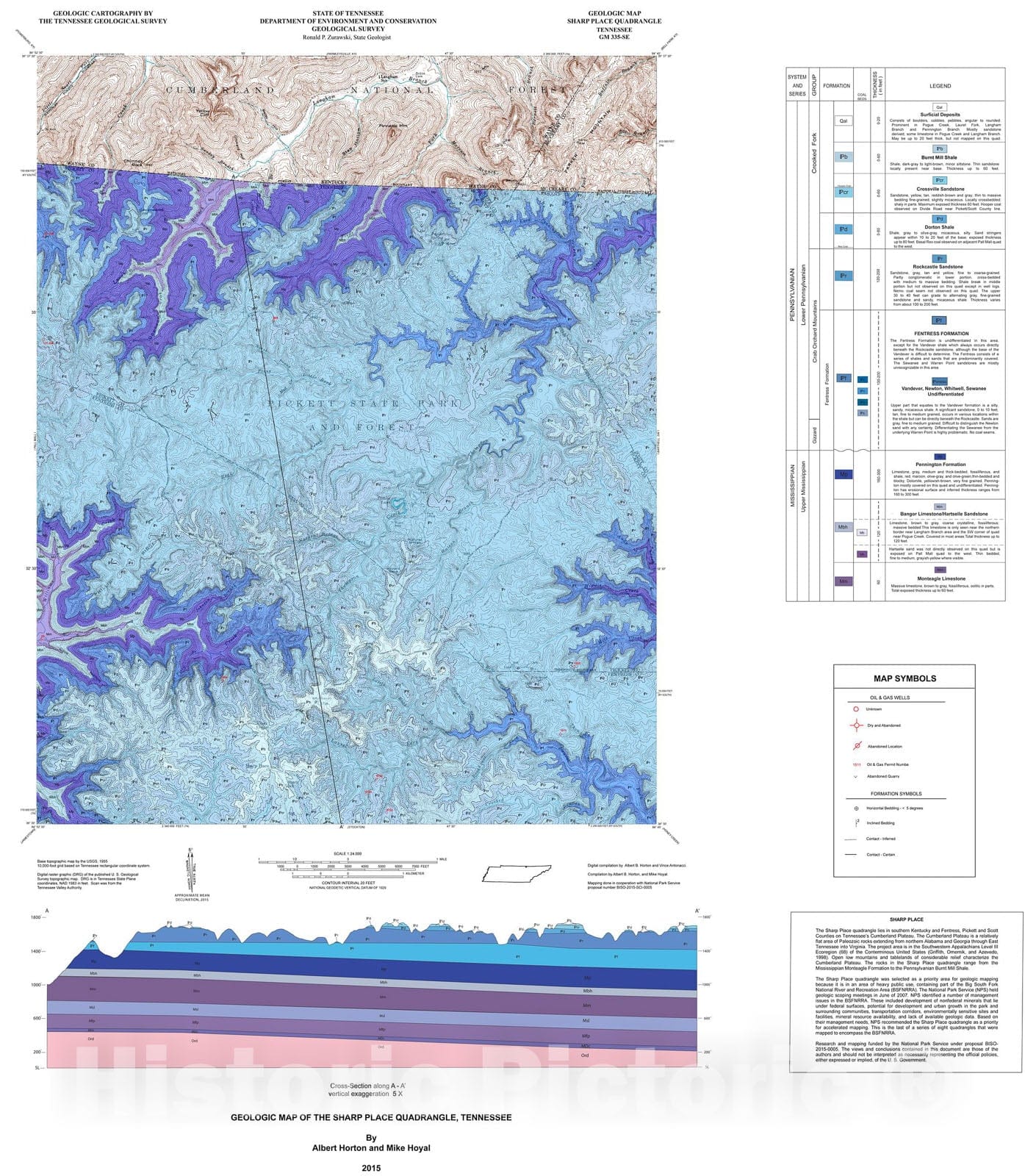Map : Geologic map of the Sharp Place quadrangle, Tennessee, 2015 Cartography Wall Art :
