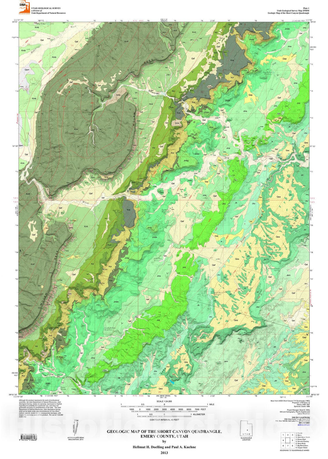 Map : Geologic map of the Short Canyon quadrangle, Emery County, Utah, 2013 Cartography Wall Art :