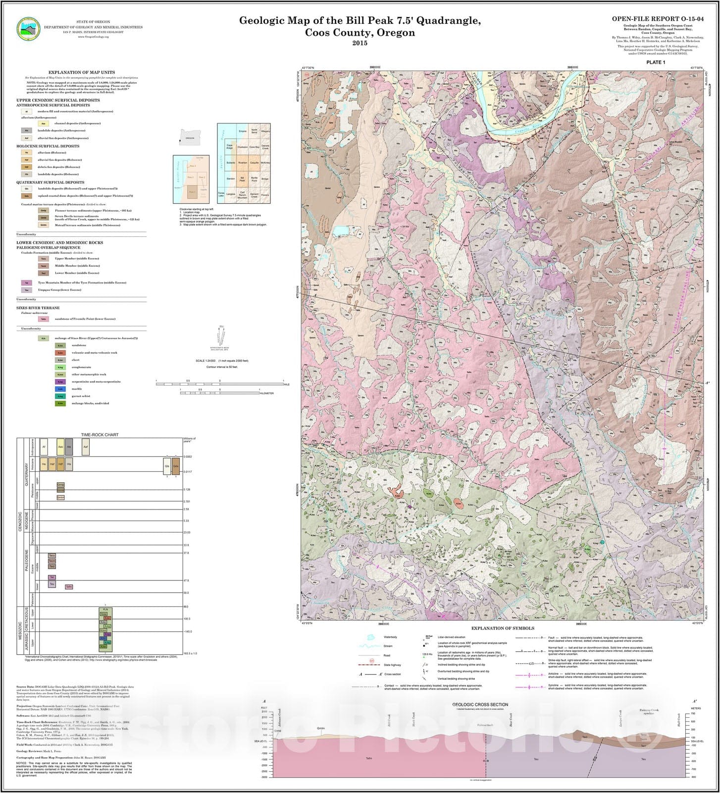Map : Geologic map of the southern Oregon coast between Bandon, Coquille, and Sunset Bay, Coos County, Oregon, 2015 Cartography Wall Art :