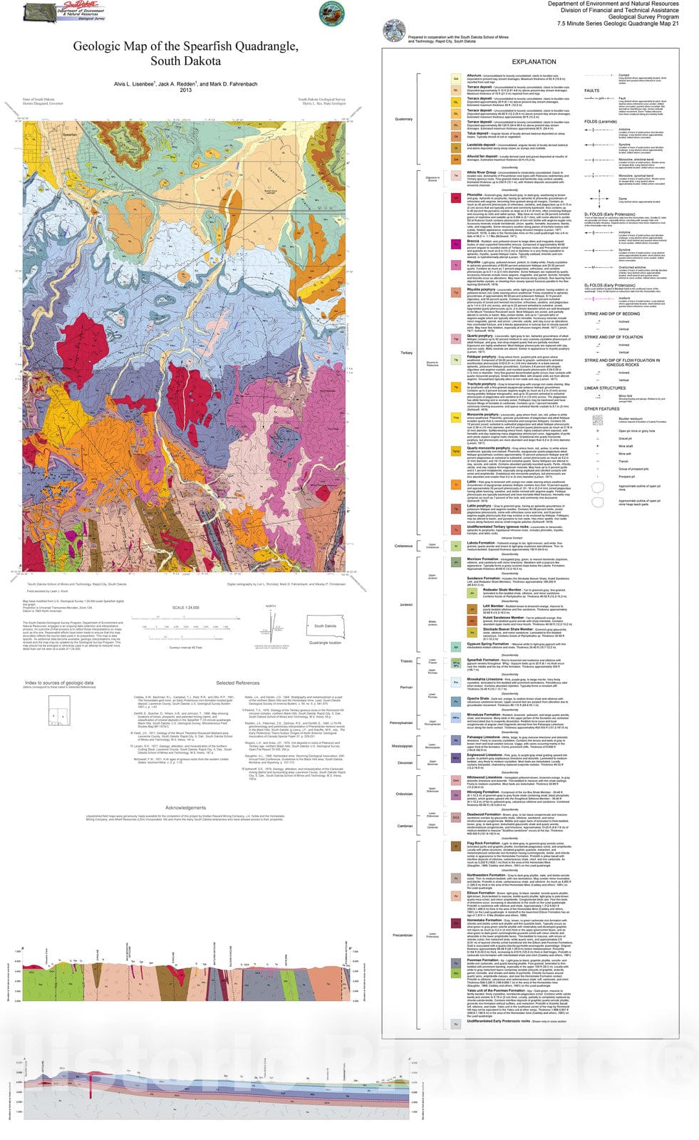 Map : Geologic map of the Spearfish quadrangle, South Dakota, 2013 Cartography Wall Art :