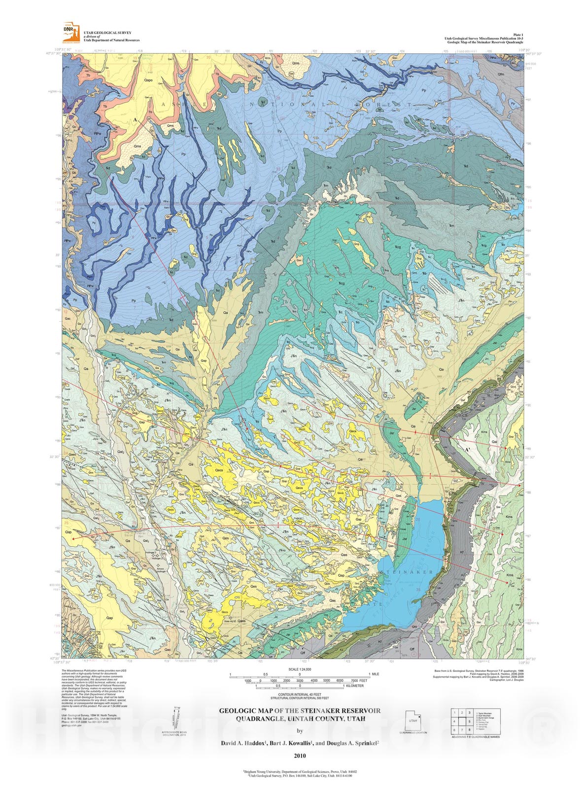 Map : Geologic map of the Steinaker Reservoir quadrangle, Uintah County, Utah, 2010 Cartography Wall Art :