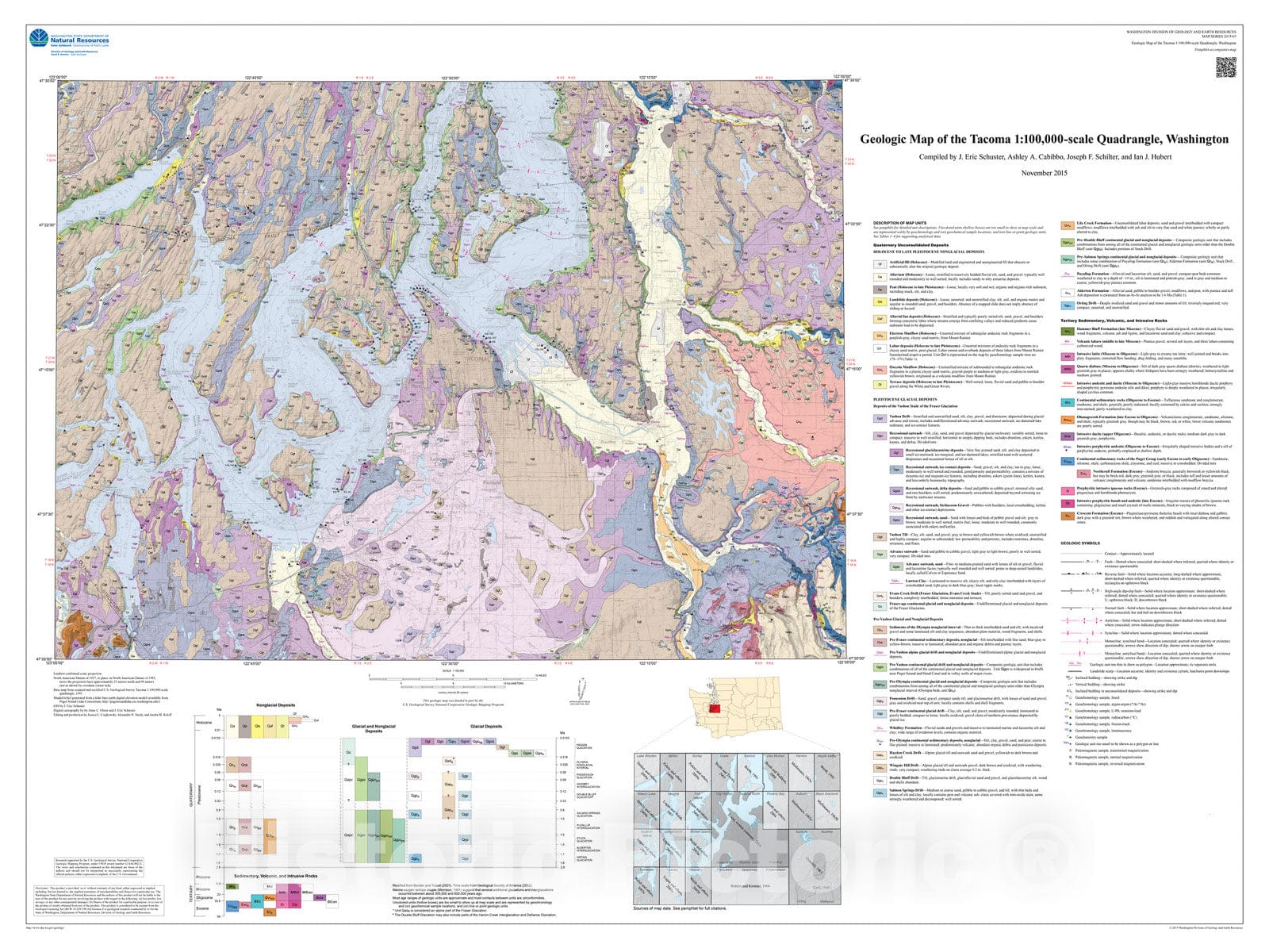 Map : Geologic map of the Tacoma 1:100,000-scale quadrangle, Washington, 2015 Cartography Wall Art :
