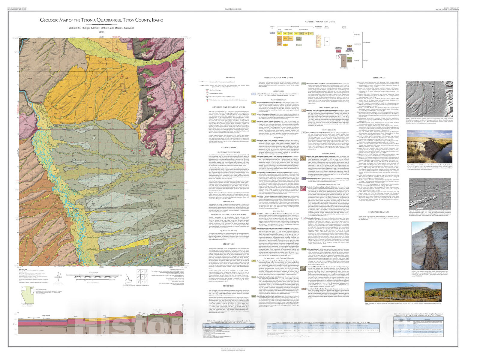 Map : Geologic Map of the Tetonia Quadrangle, Teton County, Idaho, 2013 Cartography Wall Art :