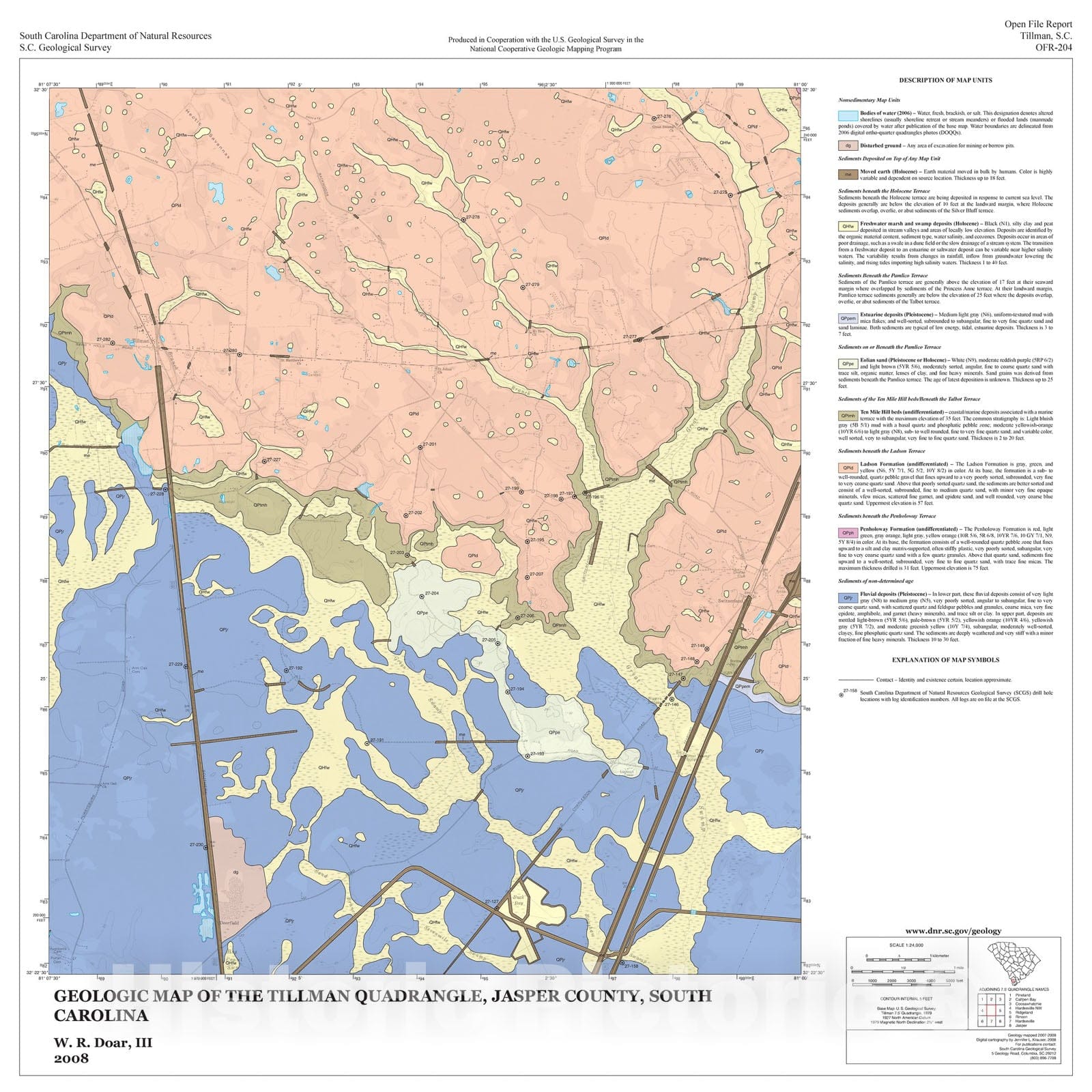 Map : Geologic Map of the Tillman Quadrangle, Jasper County, South Carolina, 2008 Cartography Wall Art :