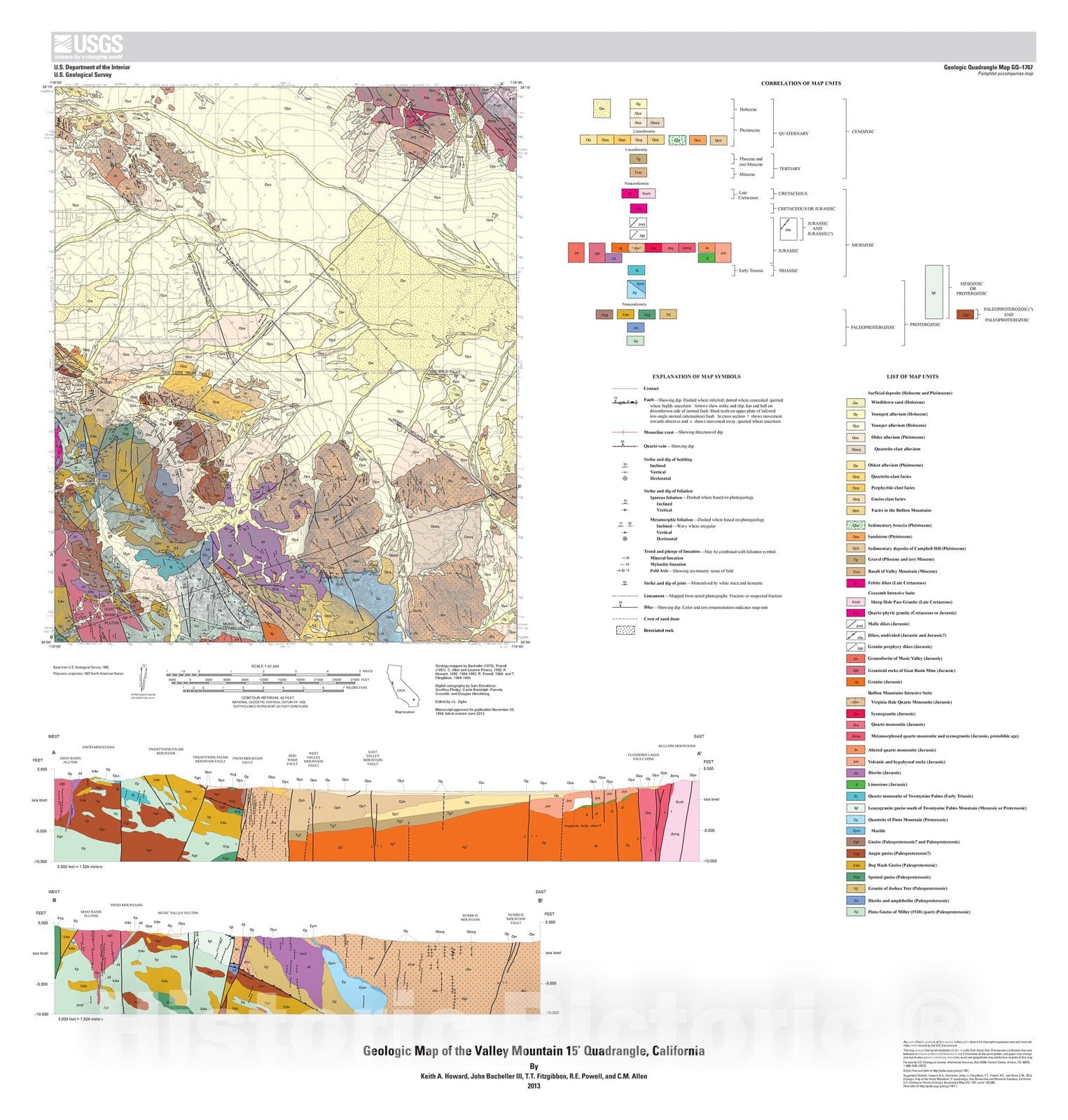 Map : Geologic map of the Valley Mountain 15' quadrangle, San Bernardino and Riverside Counties, California, 2013 Cartography Wall Art :