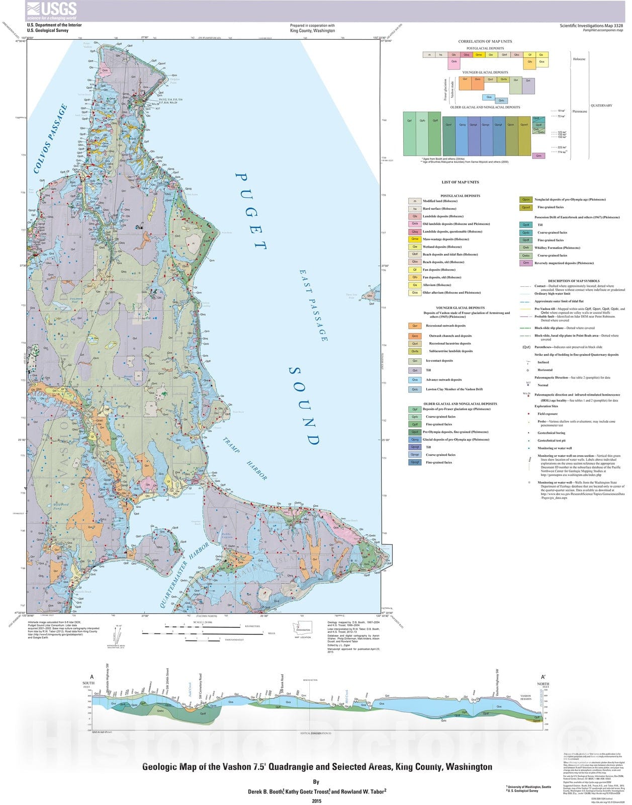 Map : Geologic map of the Vashon 7.5' quadrangle and selected areas, King County, Washington, 2015 Cartography Wall Art :