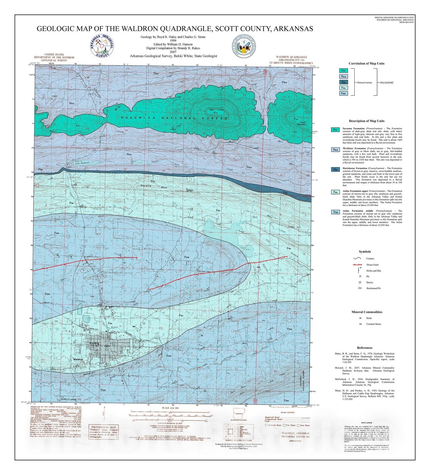 Map : Geologic map of the Waldron Quadrangle, Scott County, Arkansas, 2007 Cartography Wall Art :