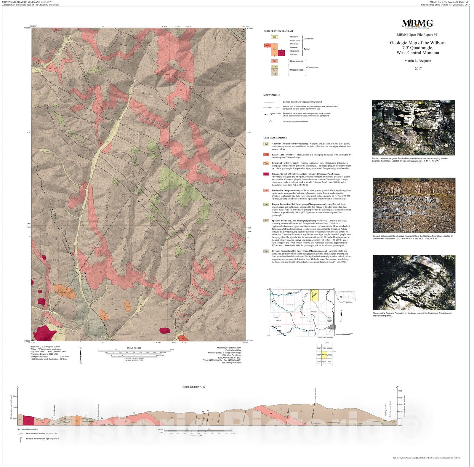 Map : Geologic map of the Wilborn 7.5' quadrangle, west-central Montana, 2017 Cartography Wall Art :