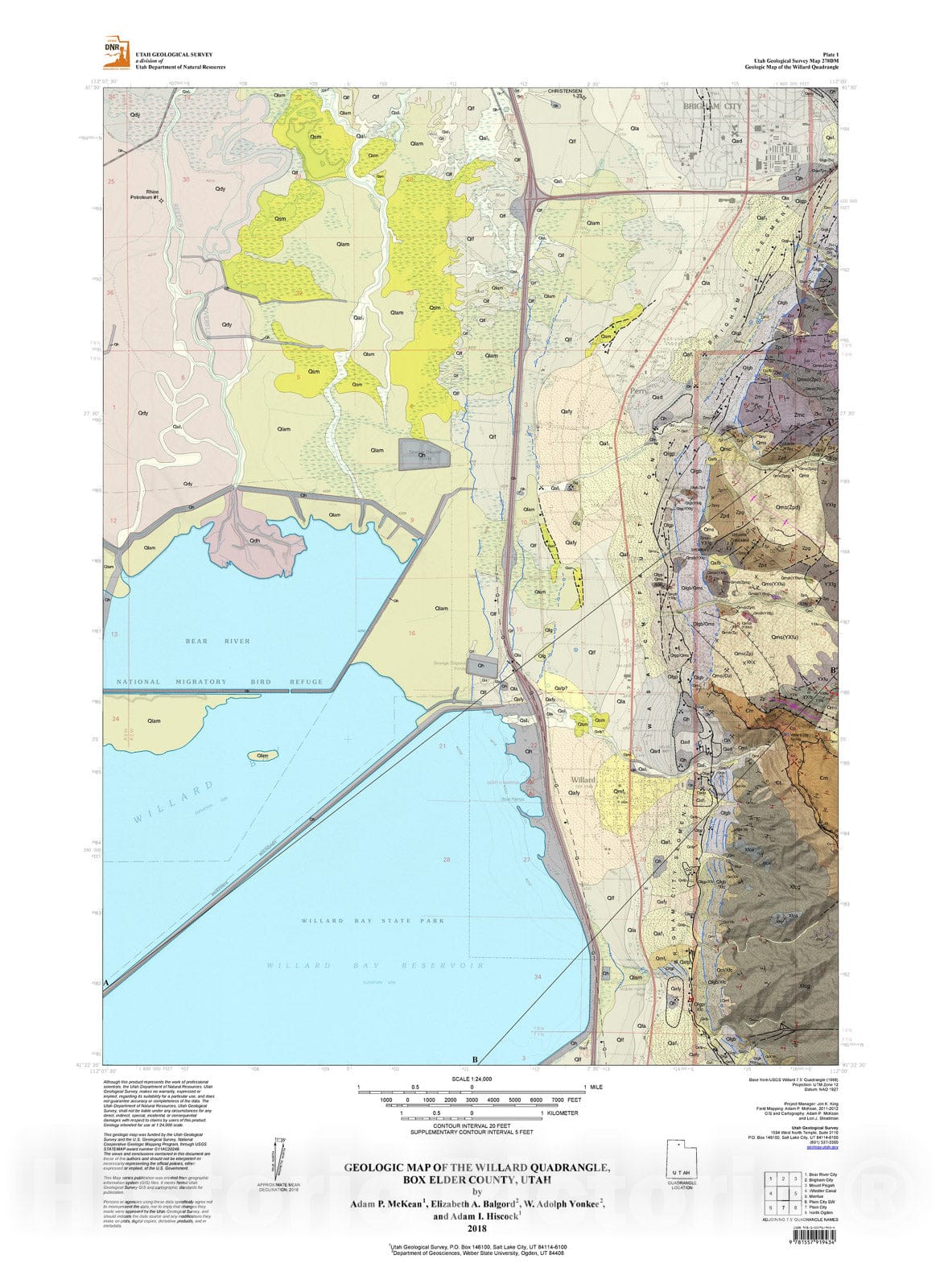 Map : Geologic map of the Willard quadrangle, Box Elder County, Utah, 2018 Cartography Wall Art :