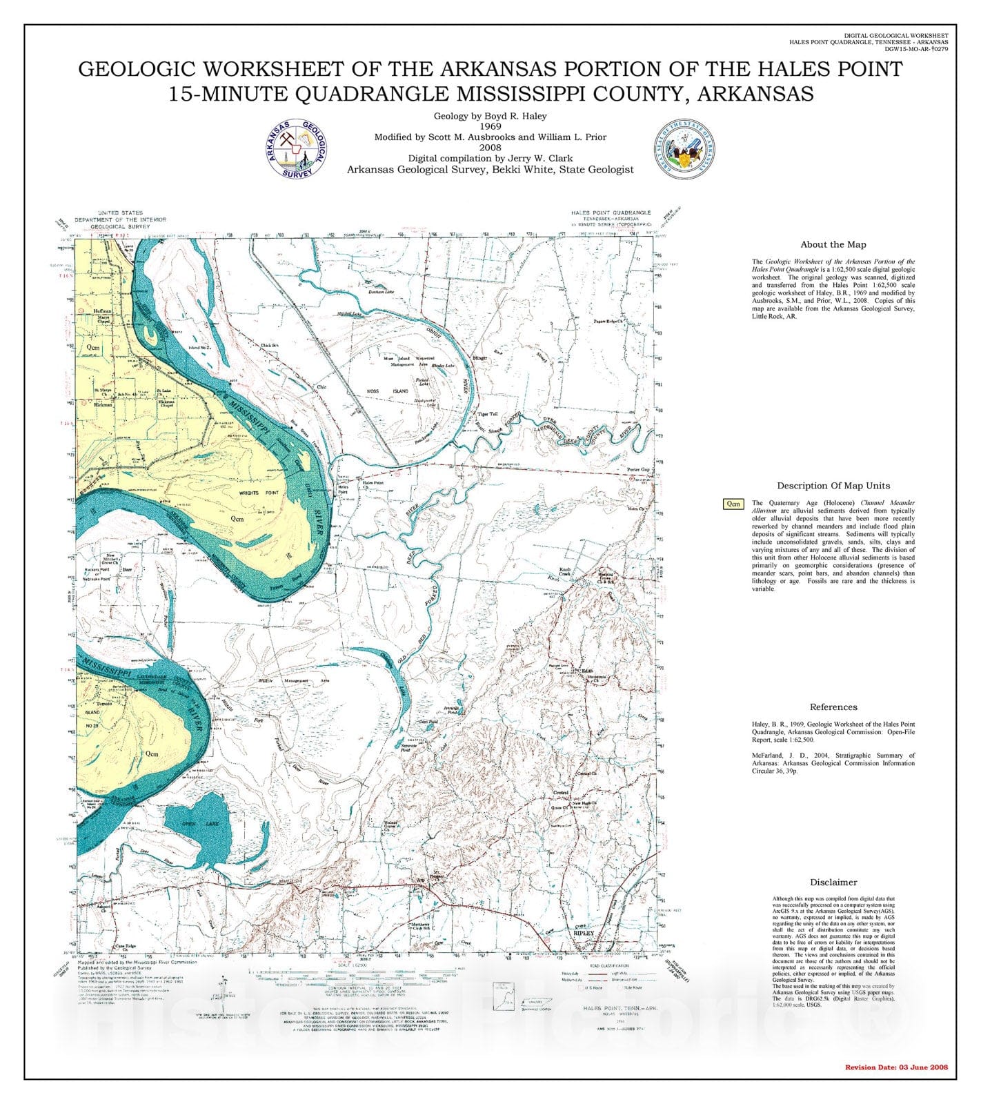 Map : Geologic worksheet of the Arkansas portion of the Hales Point 15-minute Quadrangle, Mississippi County, Arkansas, 2008 Cartography Wall Art :