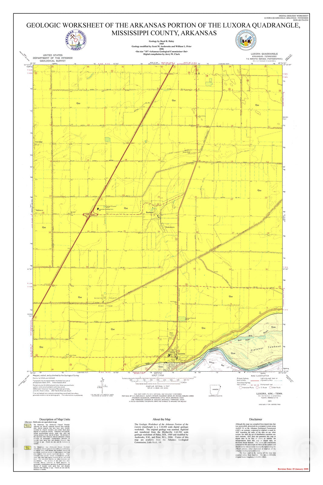 Map : Geologic worksheet of the Arkansas portion of the Luxora Quadrangle, Mississippi County, Arkansas, 2006 Cartography Wall Art :