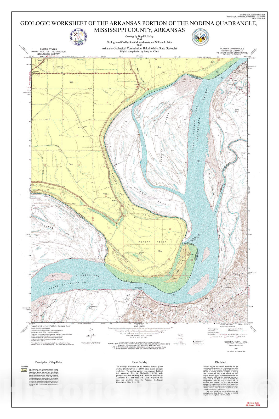 Map : Geologic worksheet of the Arkansas portion of the Nodena Quadrangle, Mississippi County, Arkansas, 2006 Cartography Wall Art :