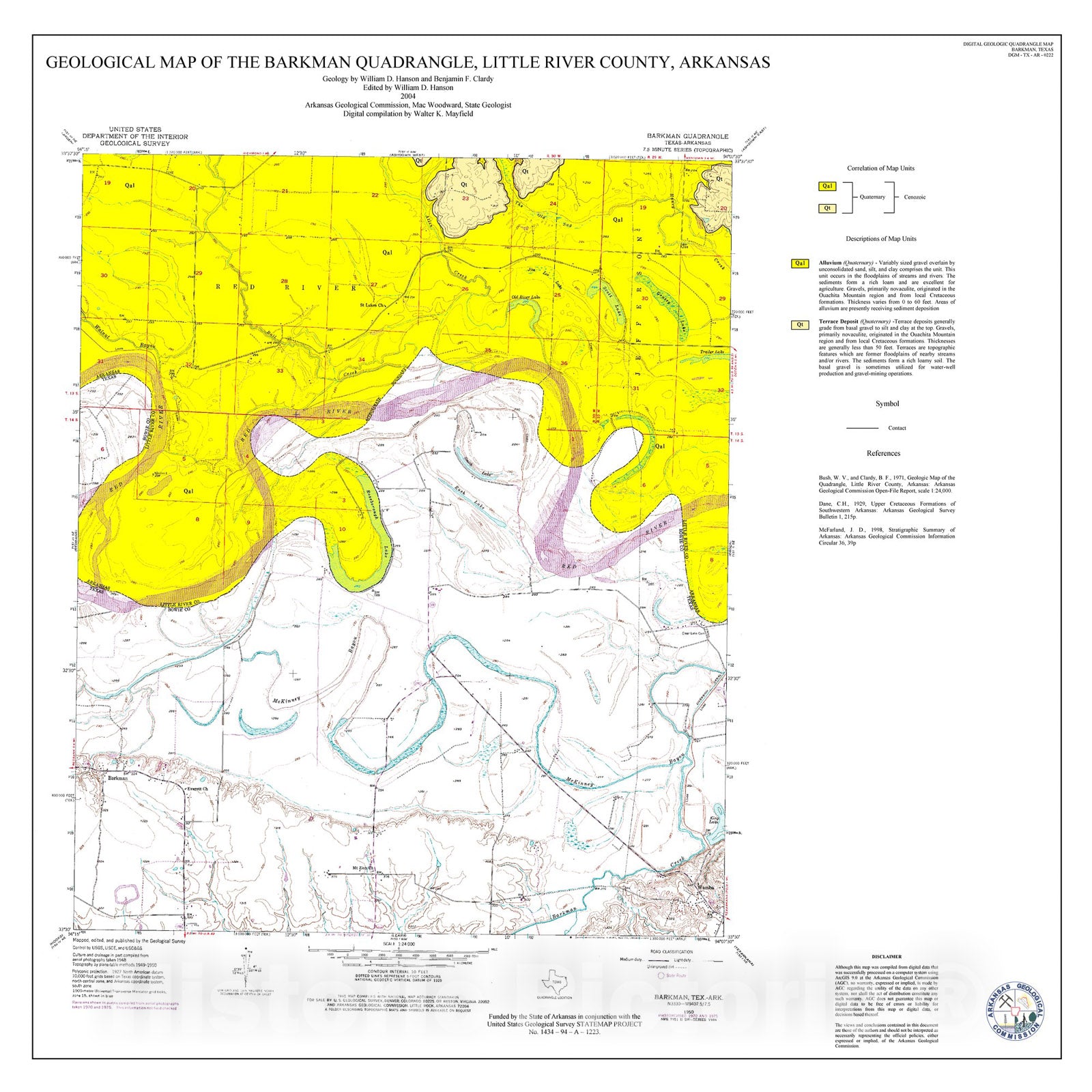 Map : Geological map of the Barkman Quadrangle, Little River County, Arkansas, 2004 Cartography Wall Art :
