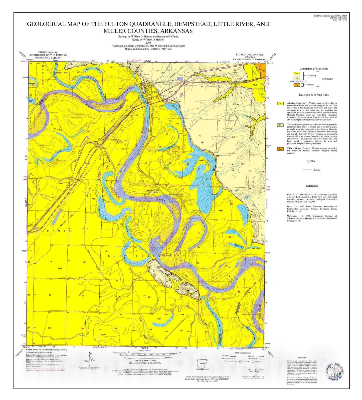 Map : Geological map of the Fulton Quadrangle, Hempstead, Little River, and Miller counties, Arkansas, 2004 Cartography Wall Art :