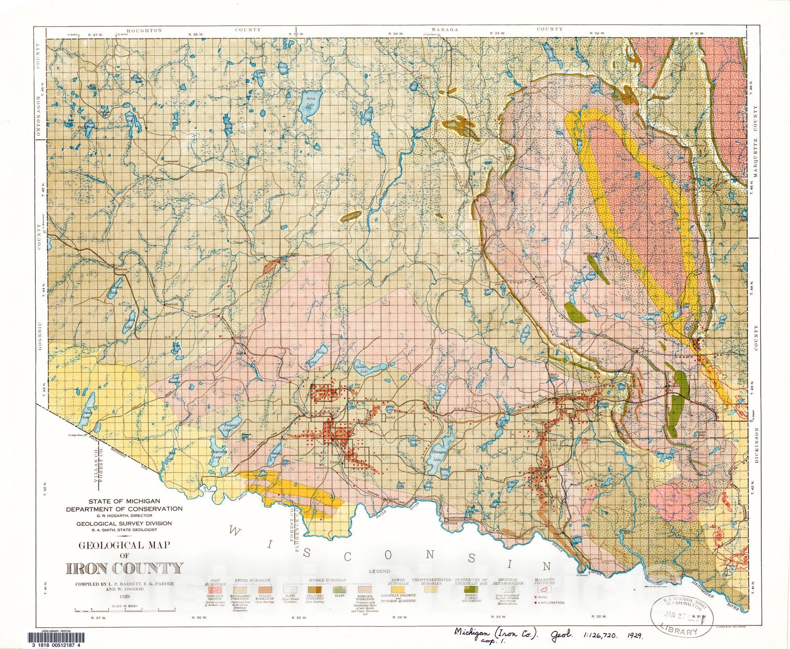 Map : Geological map of Iron County, 1929 Cartography Wall Art :