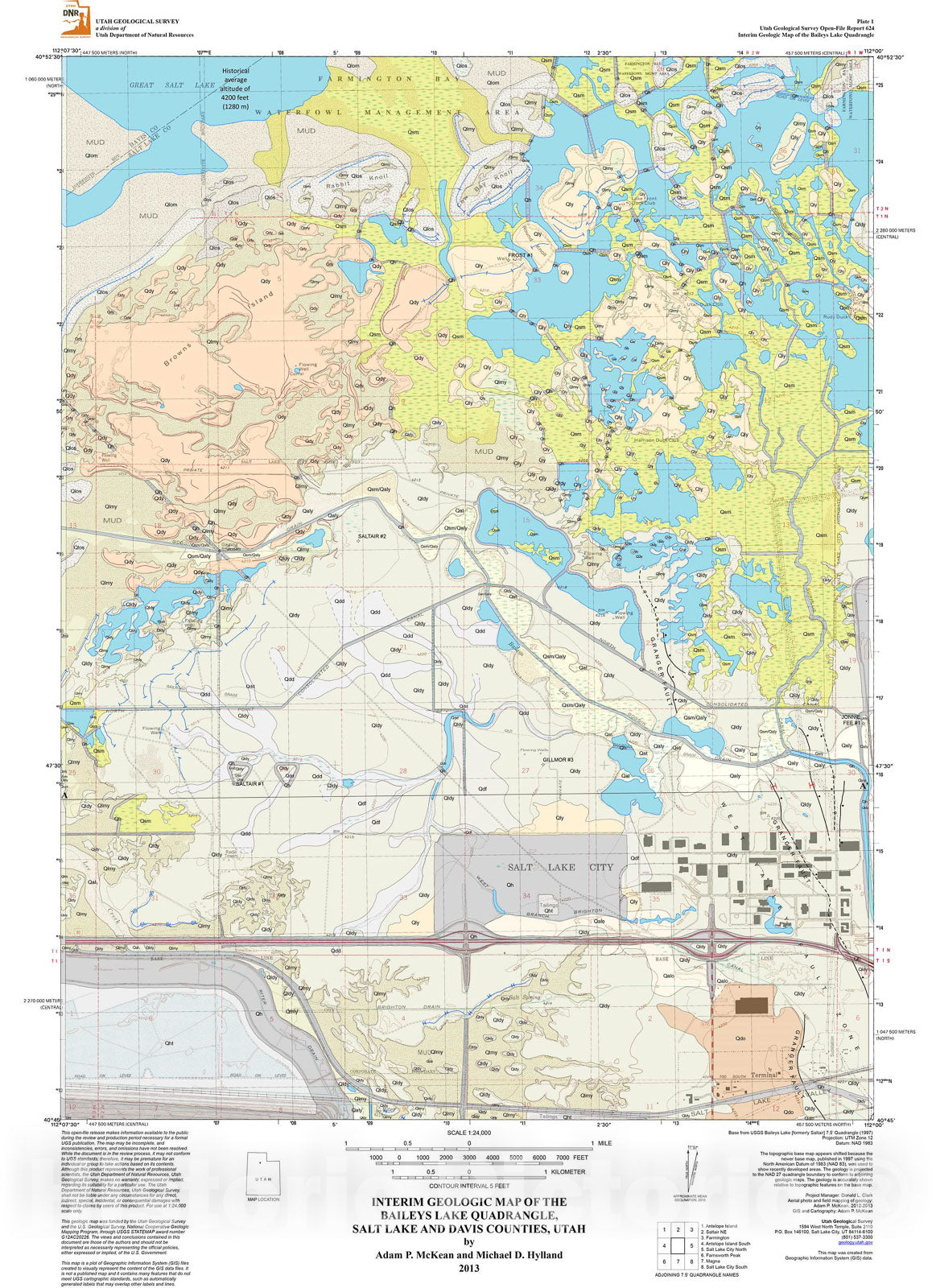 Map : Interim geologic map of the Baileys Lake quadrangle, Salt Lake and Davis Counties, Utah, 2013 Cartography Wall Art :