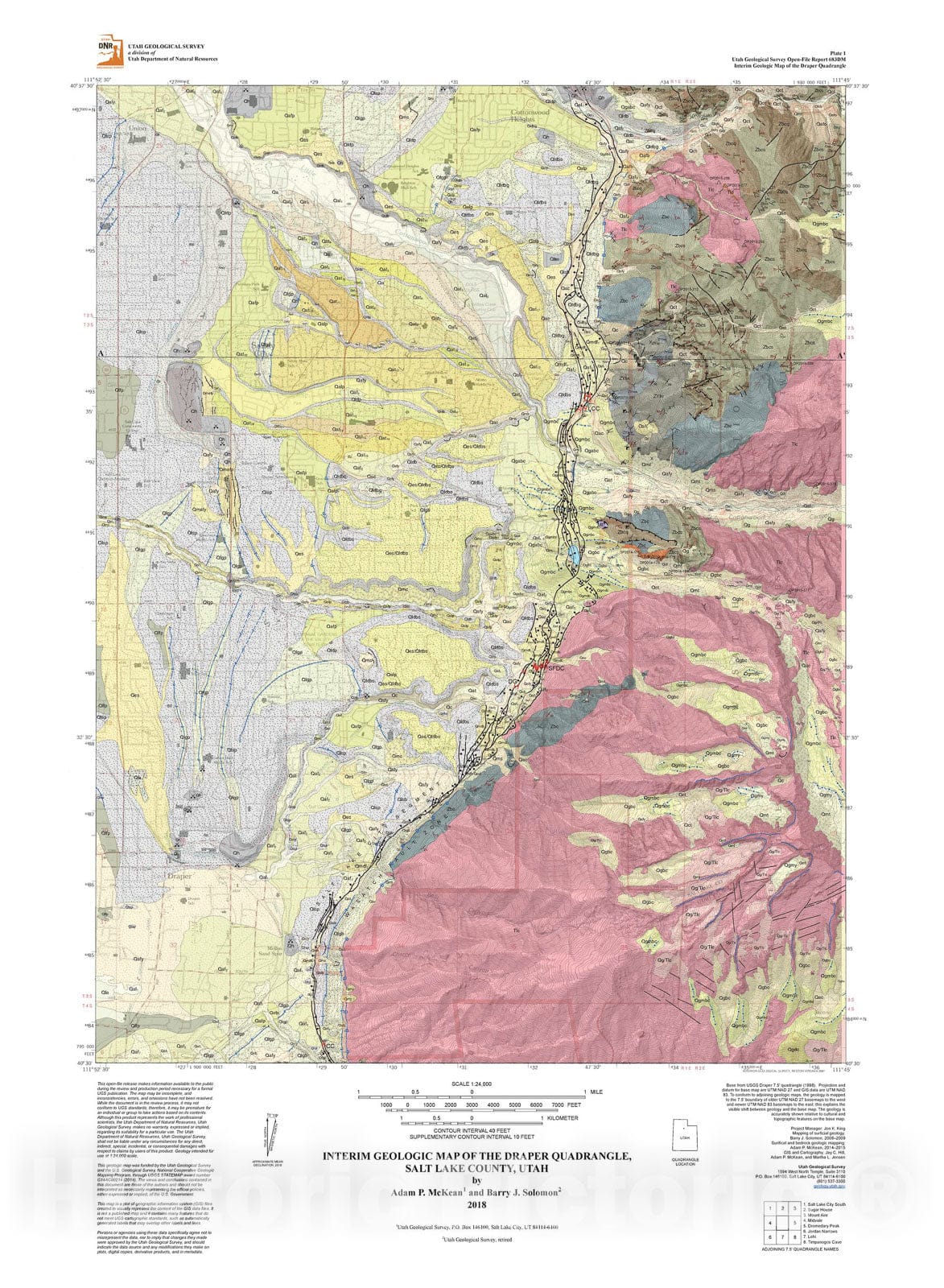 Map : Interim geologic map of the Draper quadrangle, Salt Lake and Utah Counties, Utah, 2018 Cartography Wall Art :
