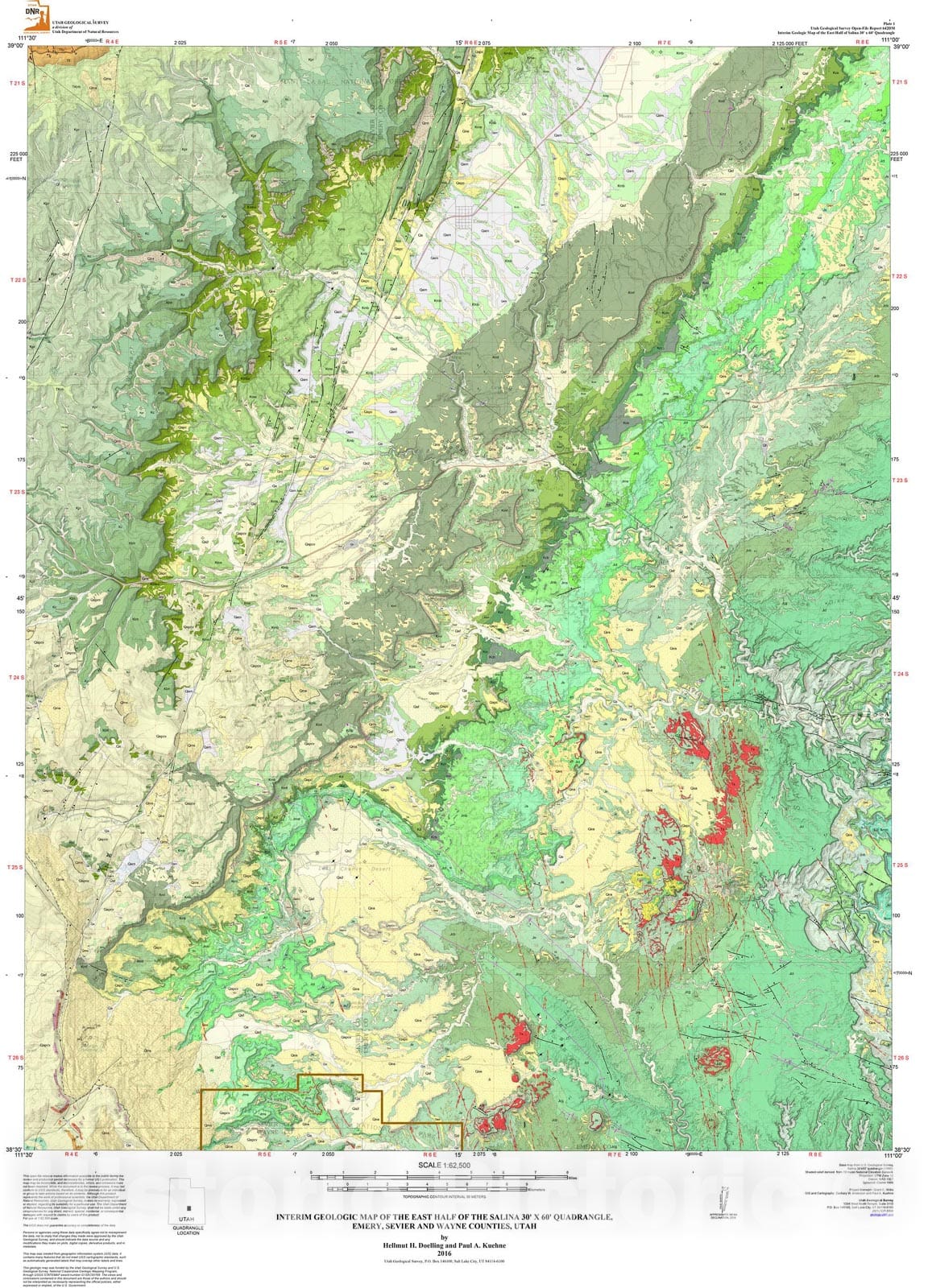 • .Map : Interim geologic map of the east half of the Salina 30' x 60' quadrangle, Emery, Sevier, and Wayne Counties, 2016 Cartography Wall Art :