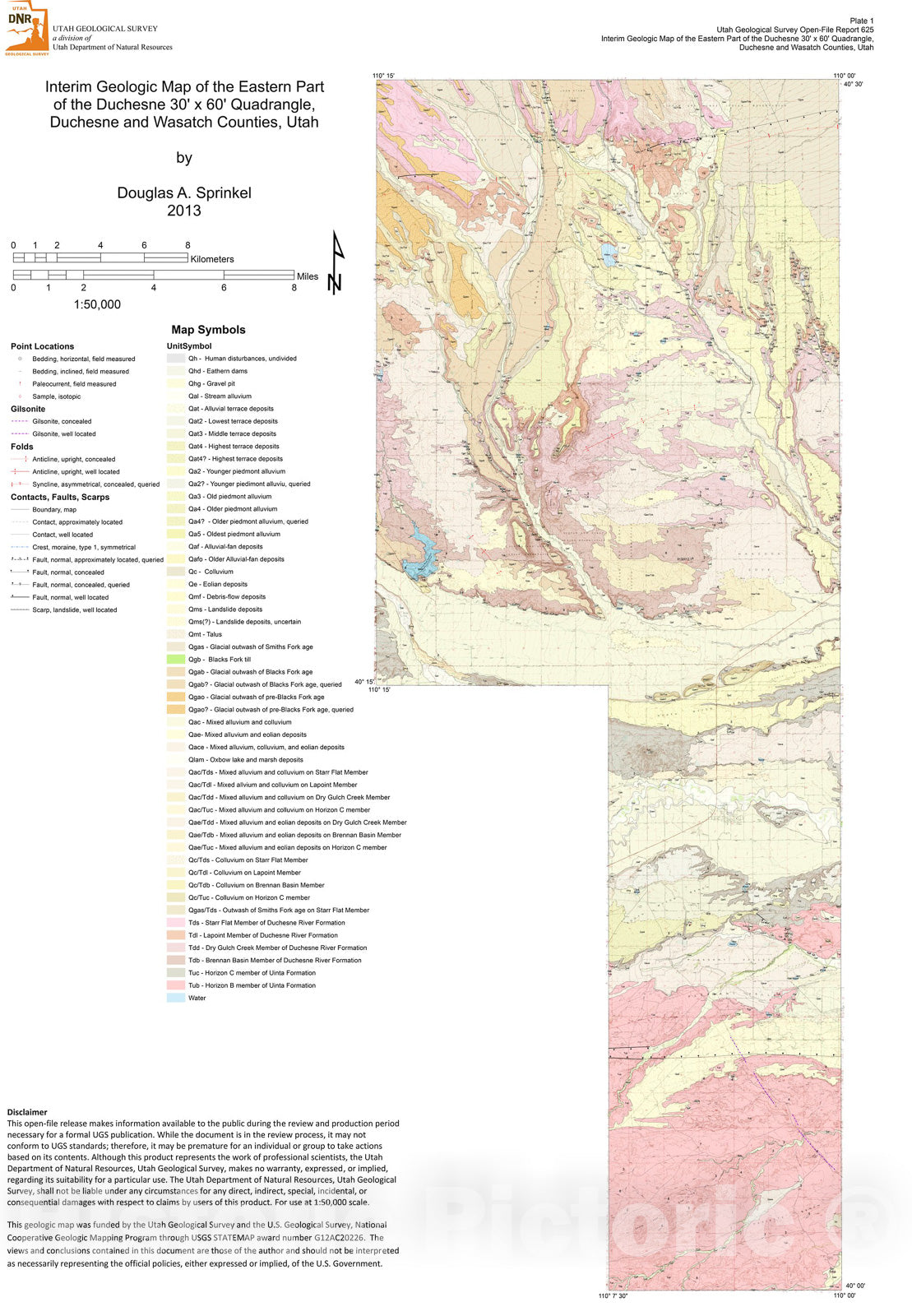 Map : Interim geologic map of the easternmost part of the Duchesne 30' x 60' quadrangle, Duchesne and Wasatch Counties, Utah -- Year one of 6, 20one3 Cartography Wall Art :