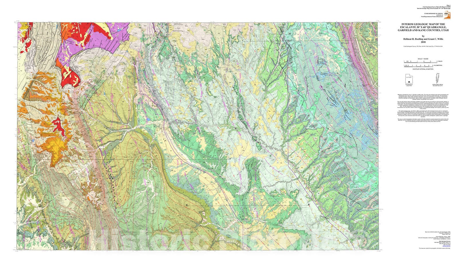 Map : Interim geologic map of the Escalante 30' x 60' quadrangle, Garfield and Kane Counties, Utah, 2018 Cartography Wall Art :