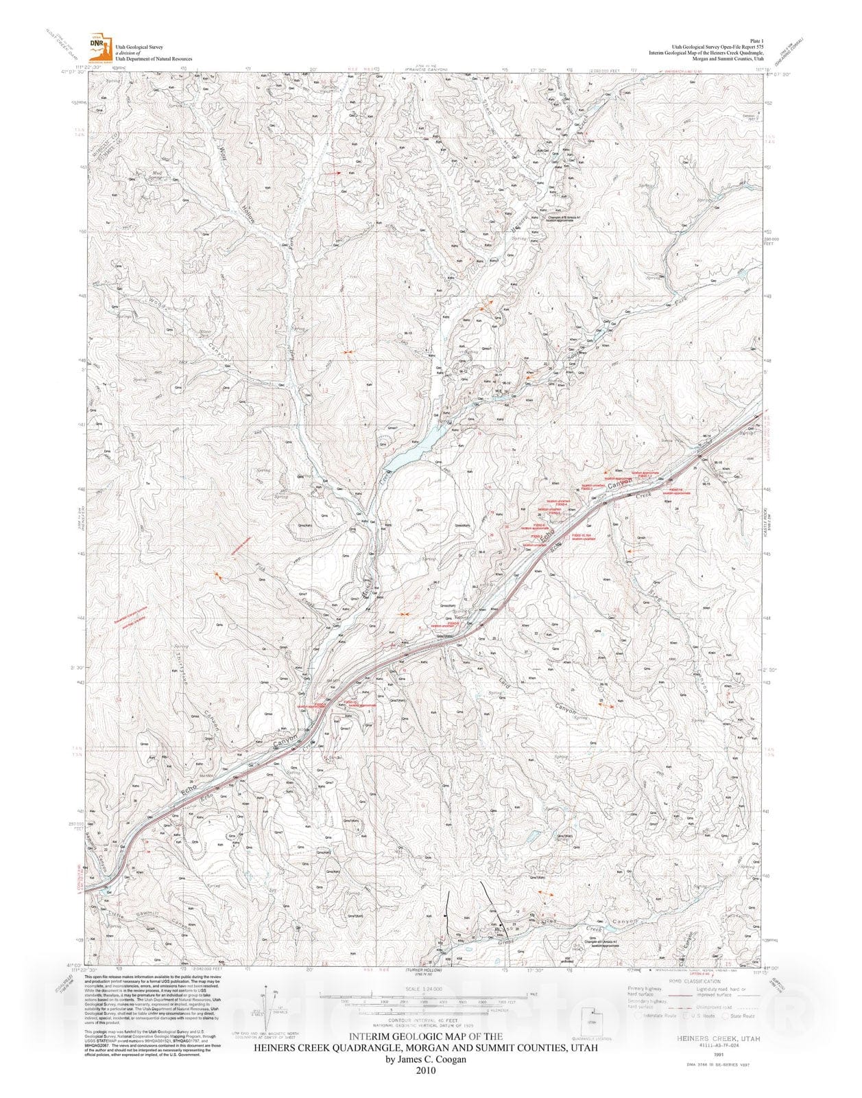 Map : Interim geologic map of the Heiners Creek quadrangle, Morgan and Summit Counties, Utah, 2010 Cartography Wall Art :