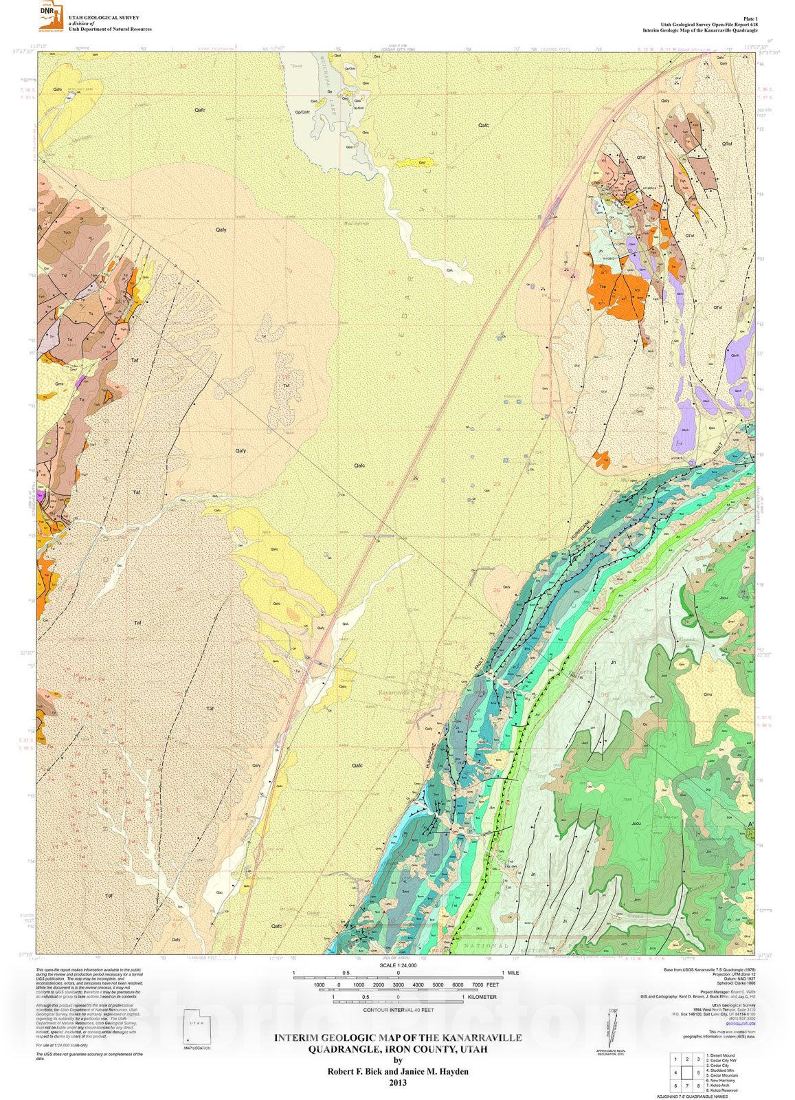 Map : Interim geologic map of the Kanarraville quadrangle, Iron County, Utah, 2013 Cartography Wall Art :