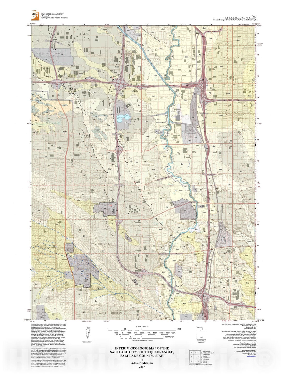 • .Map : Interim geologic map of the Salt Lake City South quadrangle, Salt Lake County, Utah, 2017 Cartography Wall Art :