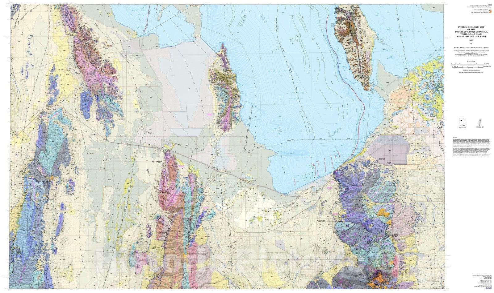 Map : Interim geologic map of the Tooele 30' x 60' quadrangle, Tooele, Salt Lake, and Davis County, Utah, 2017 Cartography Wall Art :