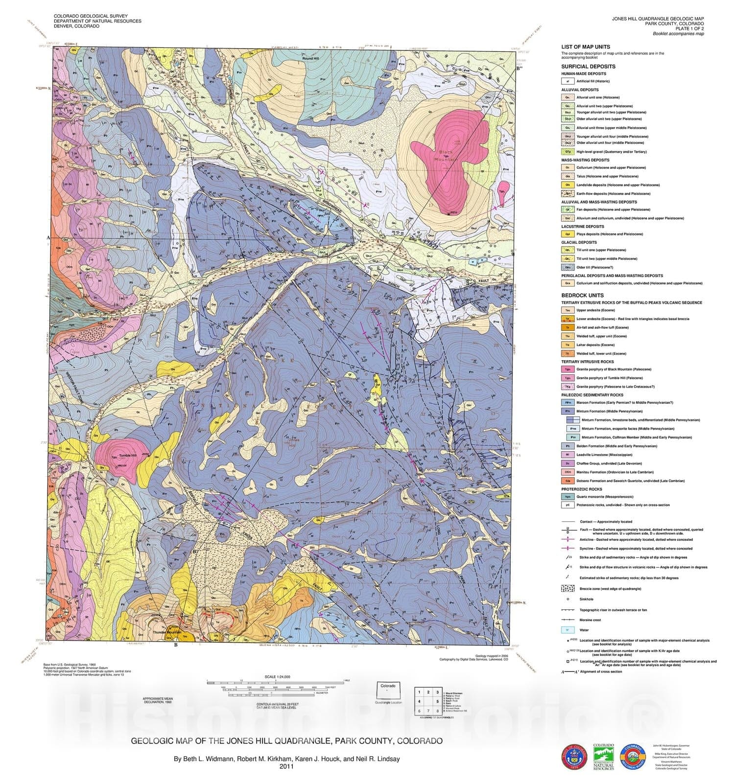 • Map : Jones Hill Quadrangle Geologic Map, Park County, Colorado, 2012 Cartography Wall Art :