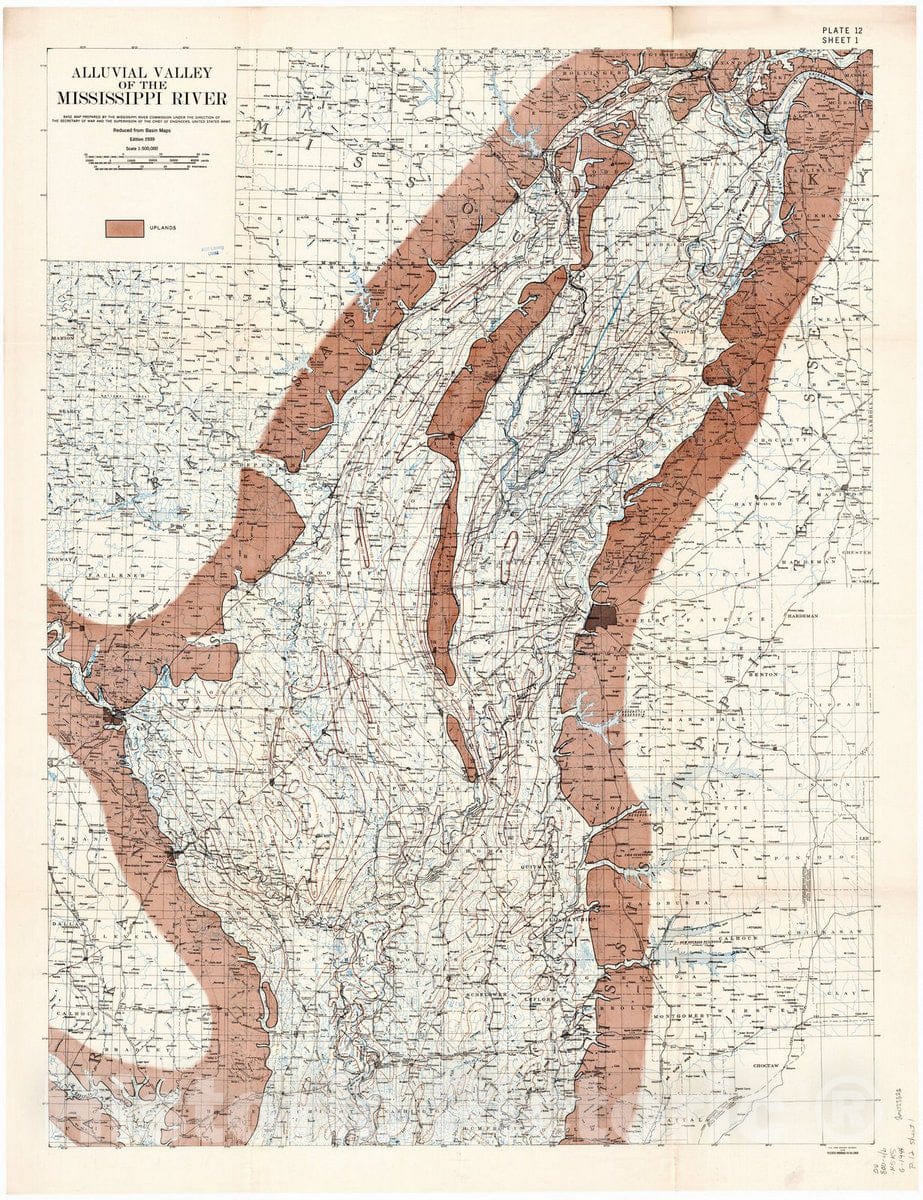 Map : Lower Mississippi River 1944 24, Geological investigation of the alluvial valley of the lower Mississippi river , Antique Vintage Reproduction