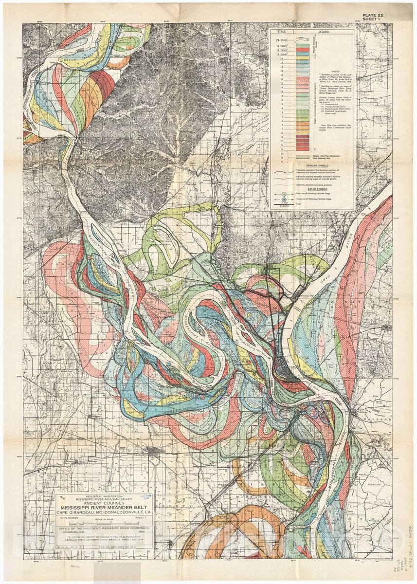 Map : Lower Mississippi River 1944 3, Geological investigation of the alluvial valley of the lower Mississippi river , Antique Vintage Reproduction
