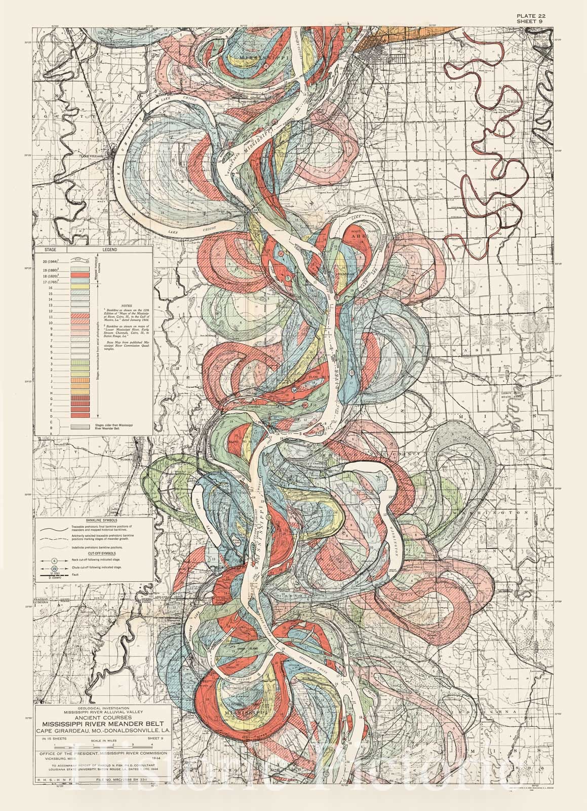 Map : Lower Mississippi River 1944 11, Geological investigation of the alluvial valley of the lower Mississippi river , Antique Vintage Reproduction