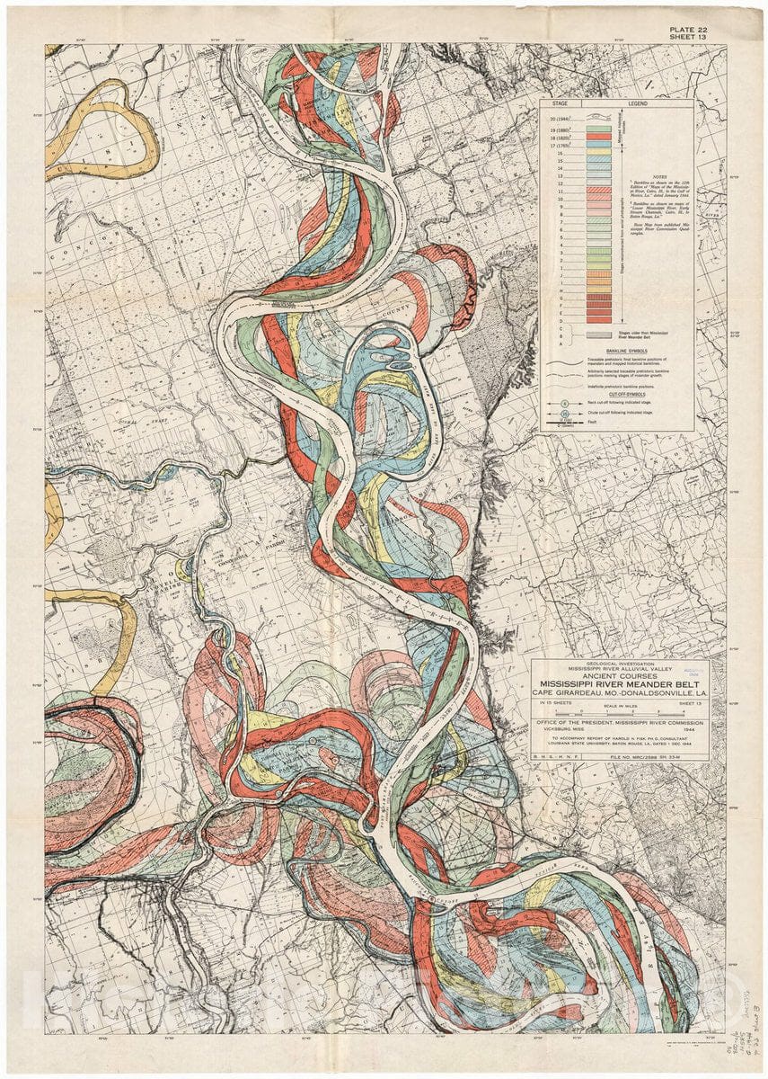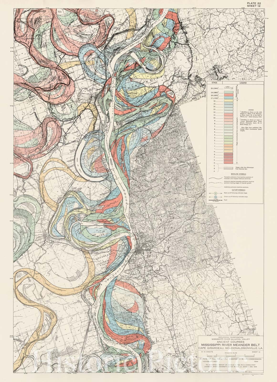 • .Map : Lower Mississippi River 1944 15, Geological investigation of the alluvial valley of the lower Mississippi river , Antique Vintage Reproduction