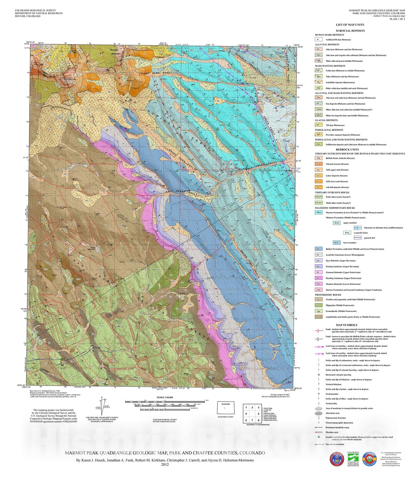 Map : Marmot Peak Quadrangle Geologic Map, Park and Chaffee Counties, Colorado, 2012 Cartography Wall Art :