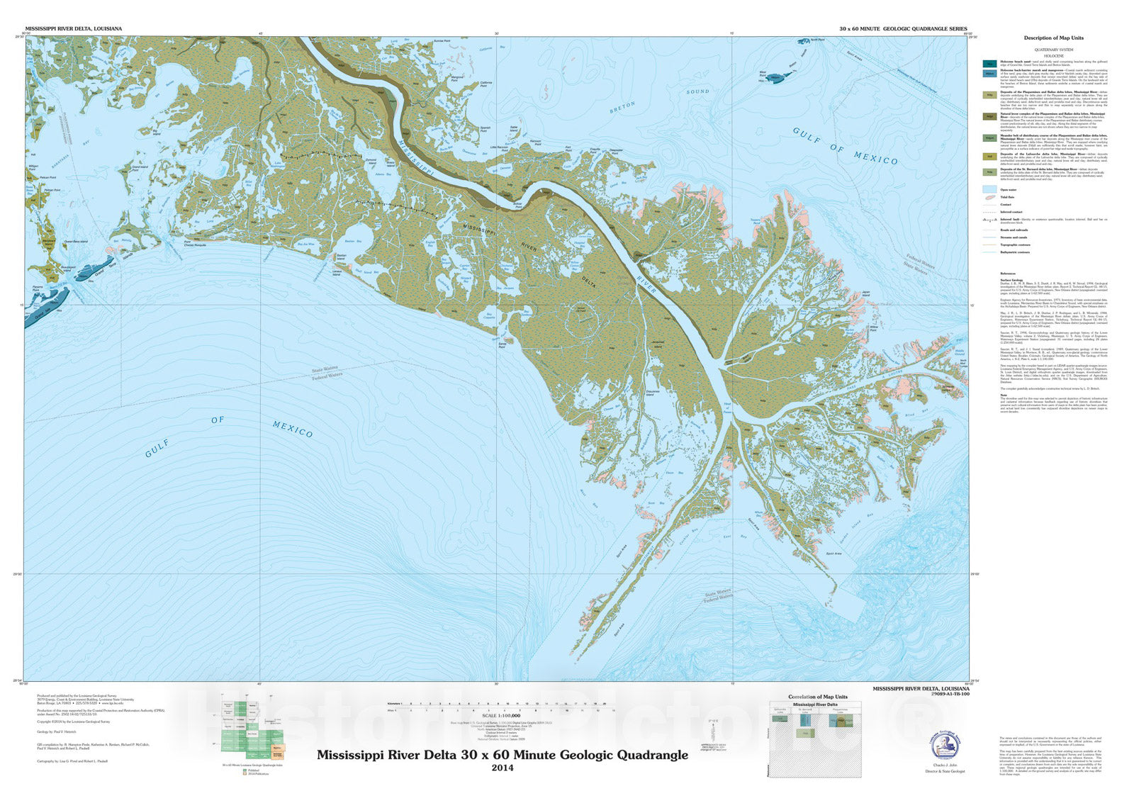 Map : Mississippi River Delta thirty x sixty minute geologic quadrangle, 2014 Cartography Wall Art :