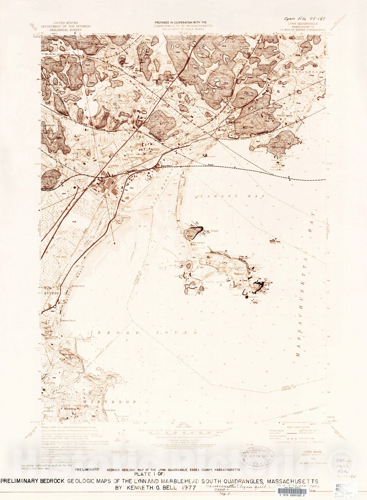 Map : Preliminary bedrock geologic maps of the Lynn and Marblehead South quadrangles, Massachusetts, 1977 Cartography Wall Art :