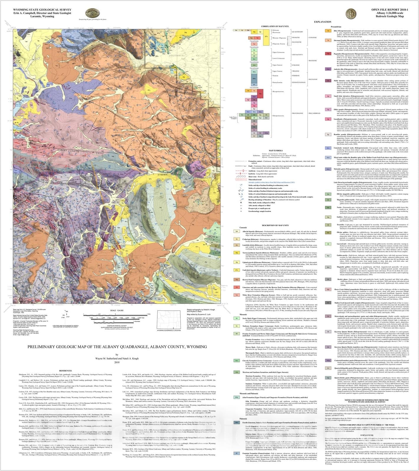 Map : Preliminary geologic map of the Albany quadrangle, Albany County, Wyoming, 2018 Cartography Wall Art :
