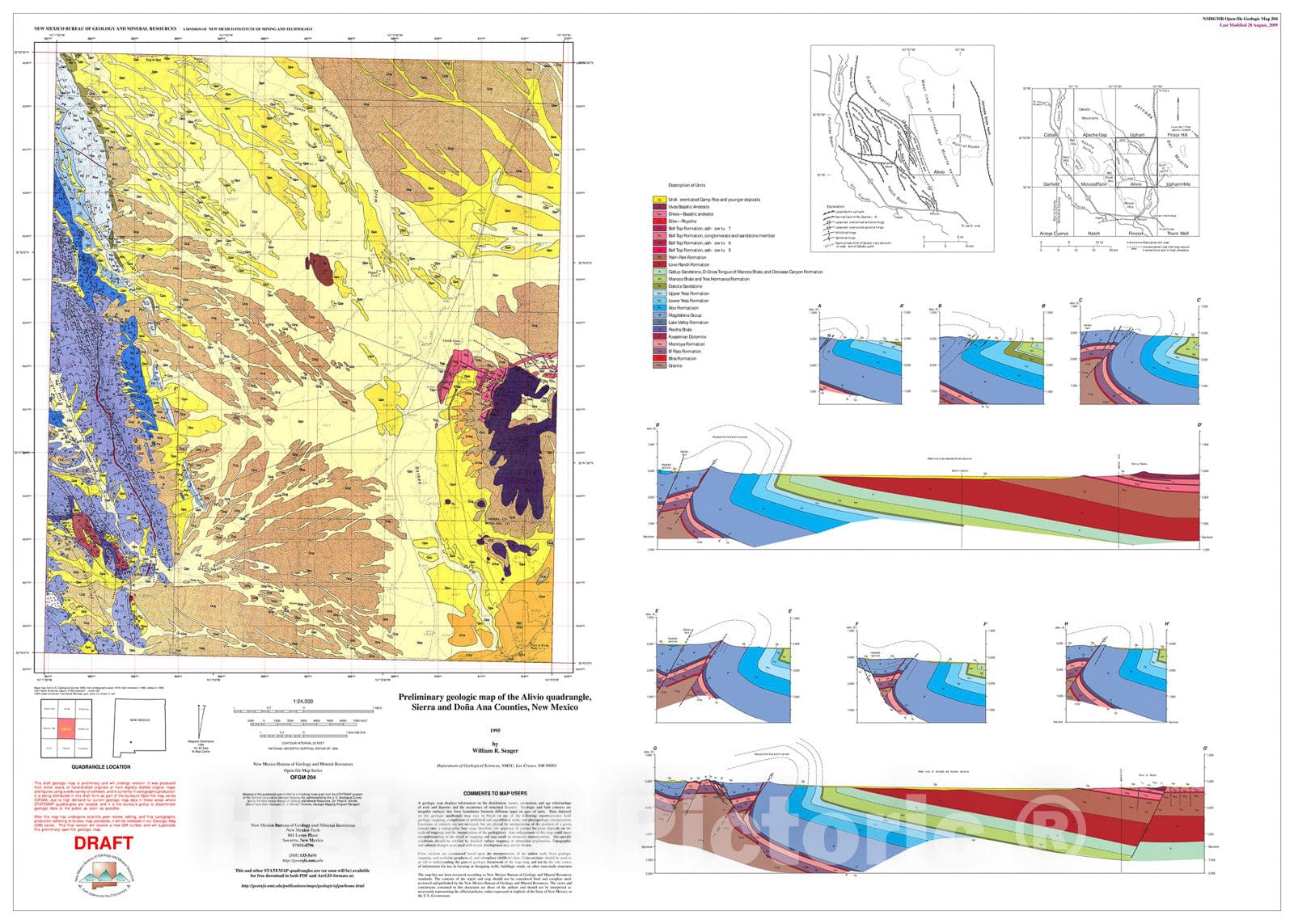 • .Map : Preliminary geologic map of the Alivio quadrangle, Sierra and Dona Ana Counties, New Mexico, 1995 Cartography Wall Art :