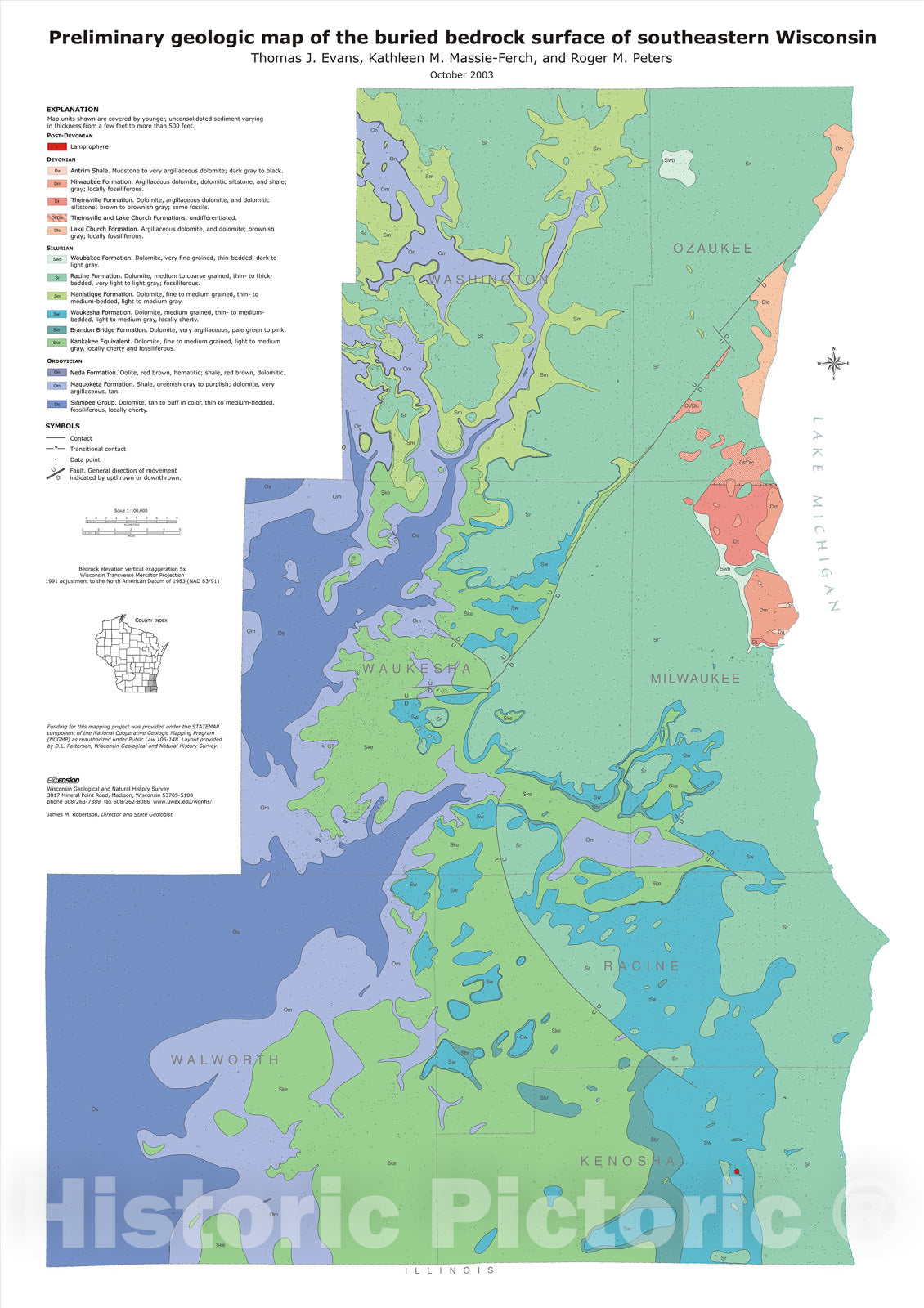 Map : Preliminary geologic map of the buried bedrock surface of southeastern Wisconsin, 2003 Cartography Wall Art :